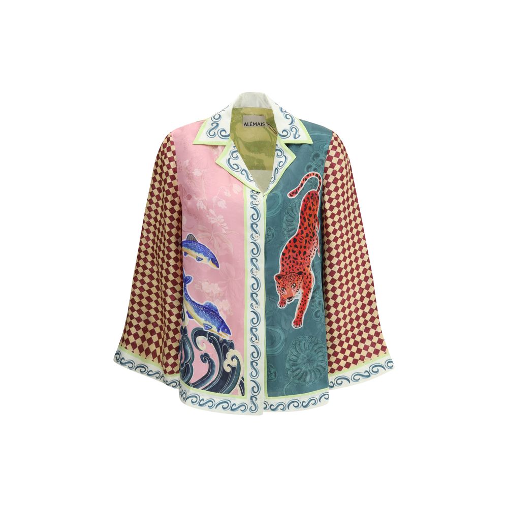 The Rochester Shirt by Alemais is a bold garment with distinctive character. It features a pointed camp collar that evokes a relaxed, retro style, balanced by the elegance of the covered button placket. The eclectic all-over printed graphic adds an artistic and vibrant touch, making this shirt perfect for those who want to express personality through their style.