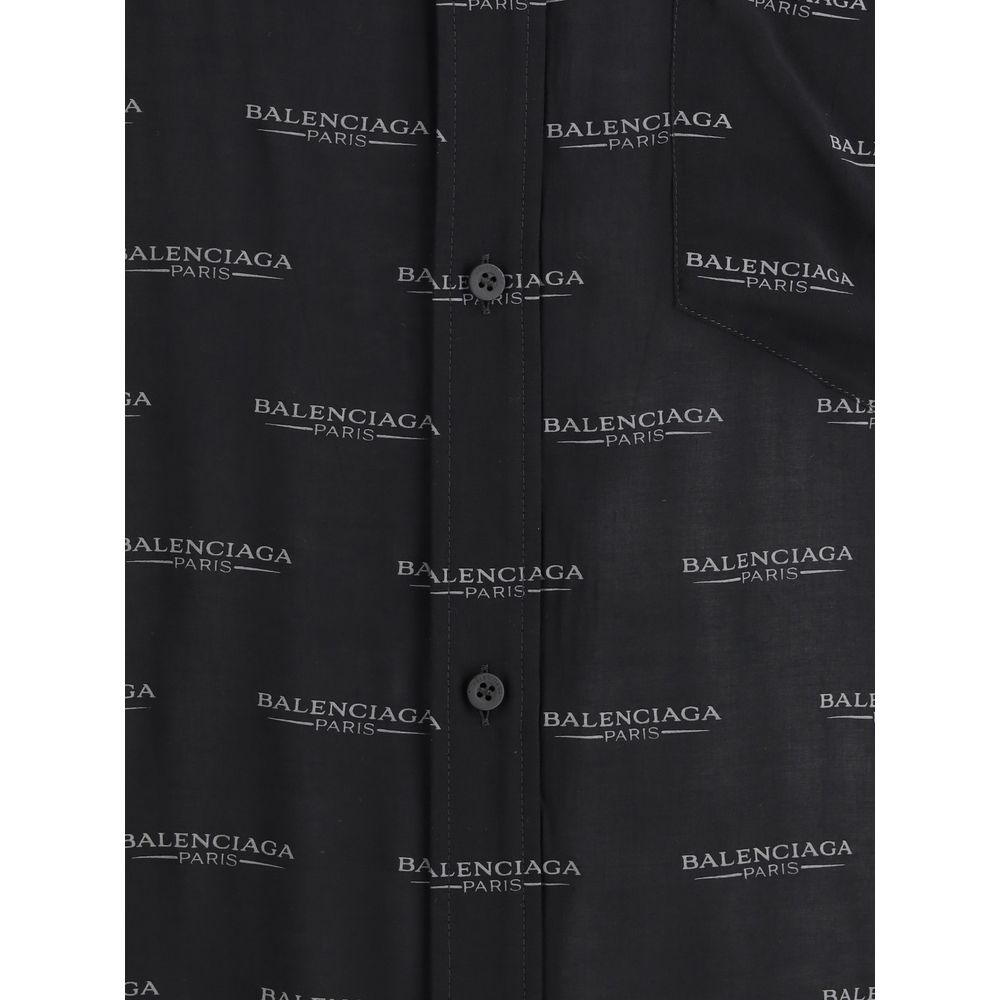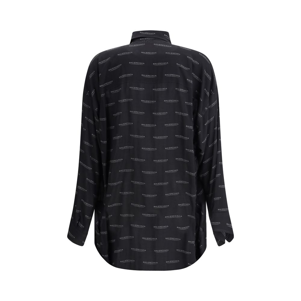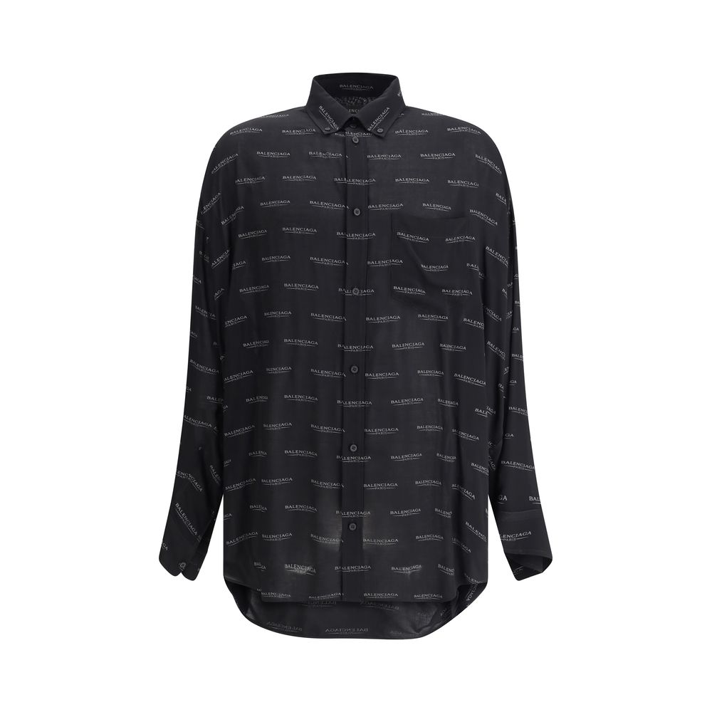 Shirt by Balenciaga with a distinctive and contemporary design. Crafted with a classic collar and front button closure, it features adjustable button cuffs for a customized fit. The garment is embellished with the iconic all-over repeated contrasting monogram, lending character and recognition. The oversized fit completes the look with a trendy, urban touch.