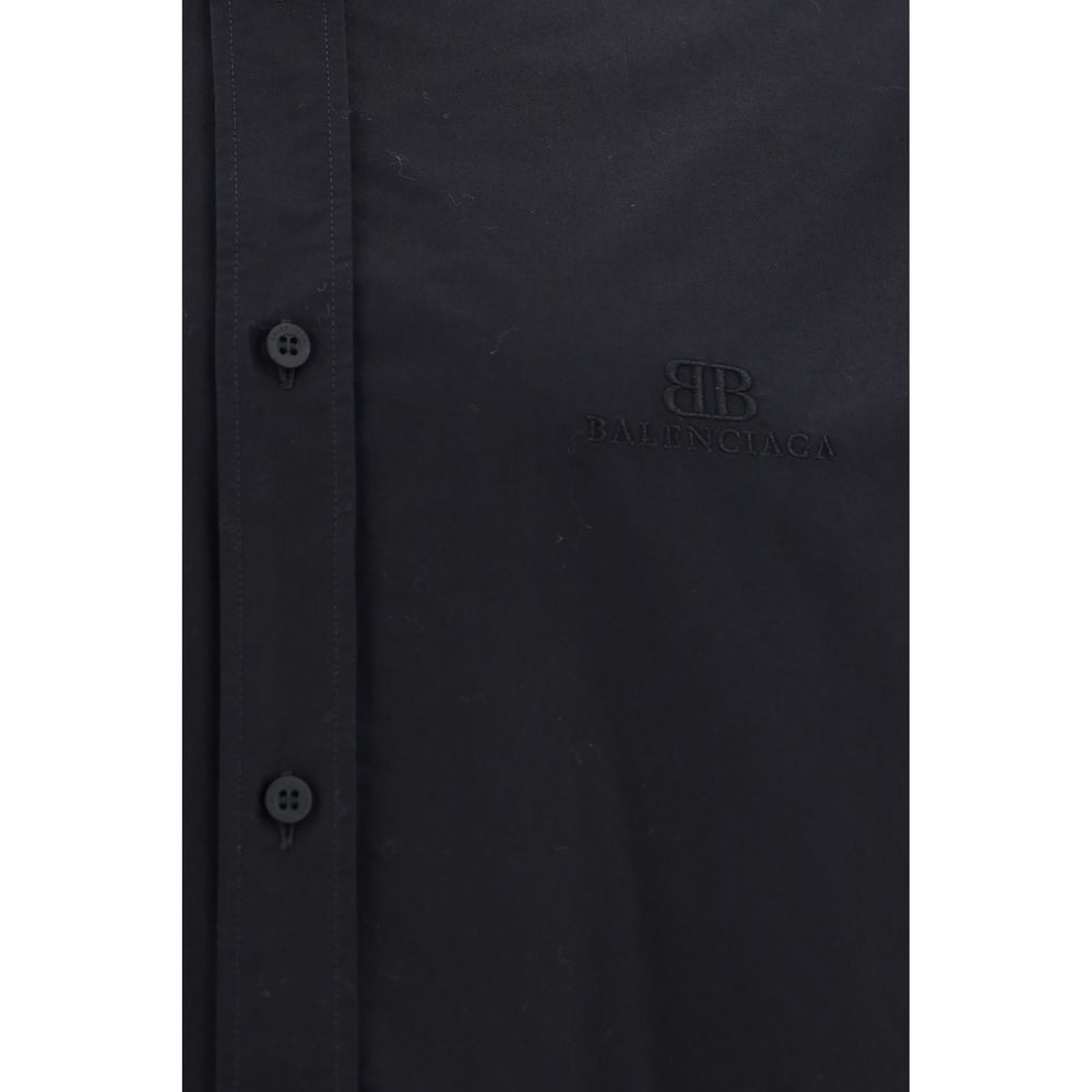 Cotton Oversized Shirt by Balenciaga, classic collar, front closure by matching tone-on-tone buttons, monochrome pattern, straight hem, matching embroidered brand logo on front, oversized fit.