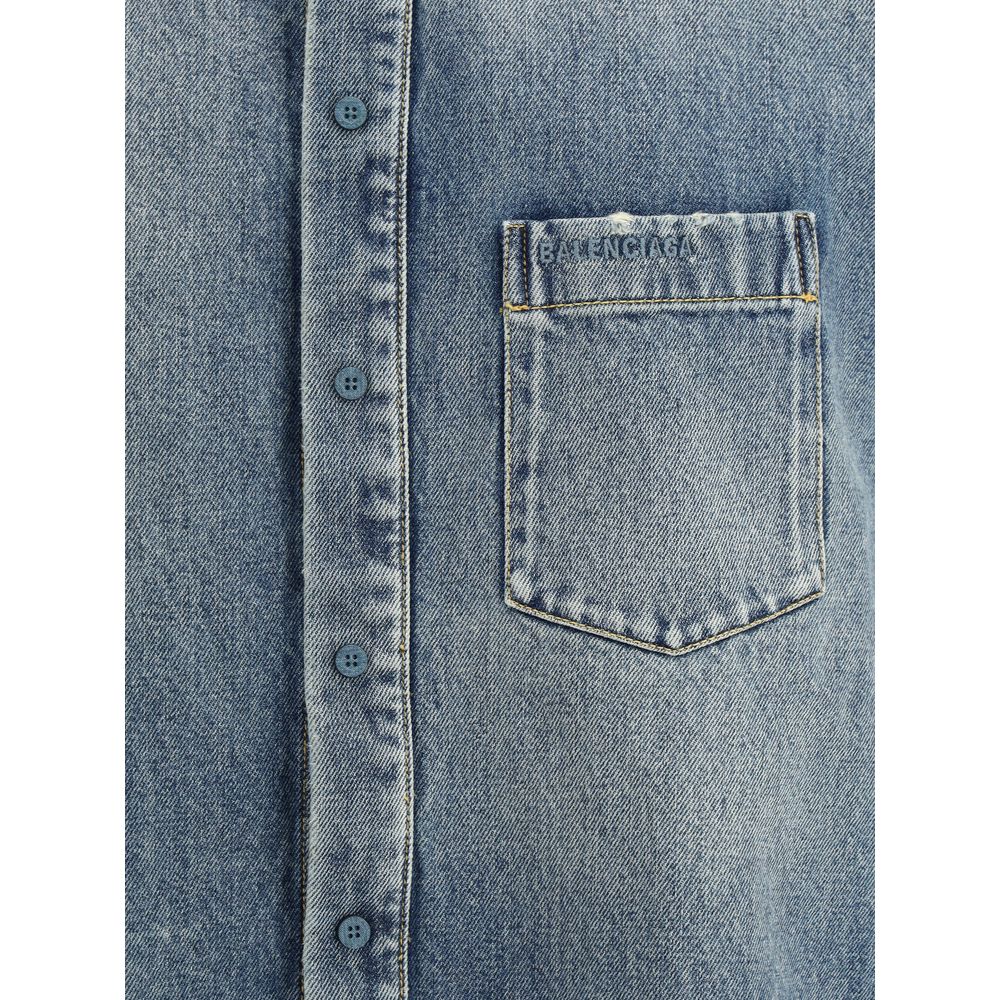 Denim-effect cotton Shirt by Balenciaga features a classic collar and front snap-button closure. Features welt pocket with iconic monogram applique on chest, adjustable button cuffs and oversized fit. A garment that combines the workwear aesthetic with the brand’s contemporary language.