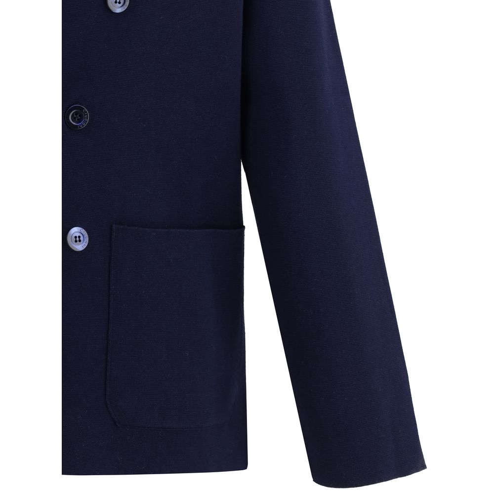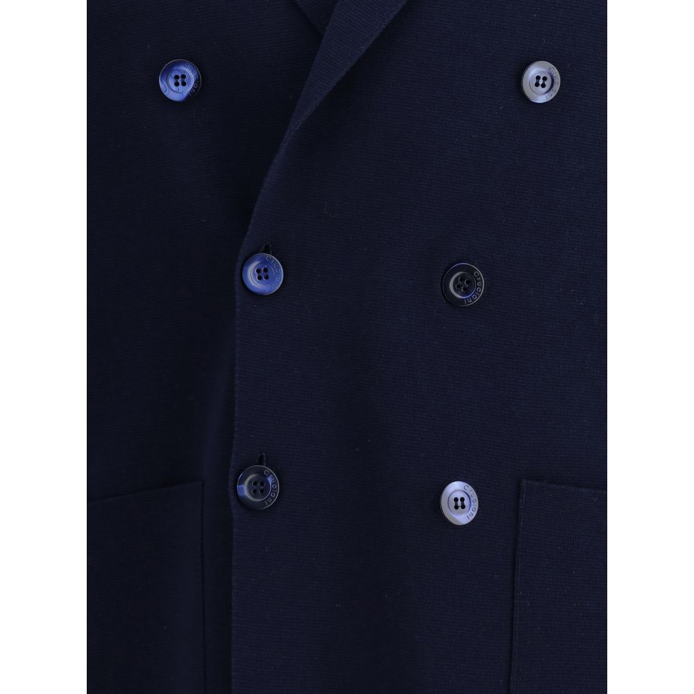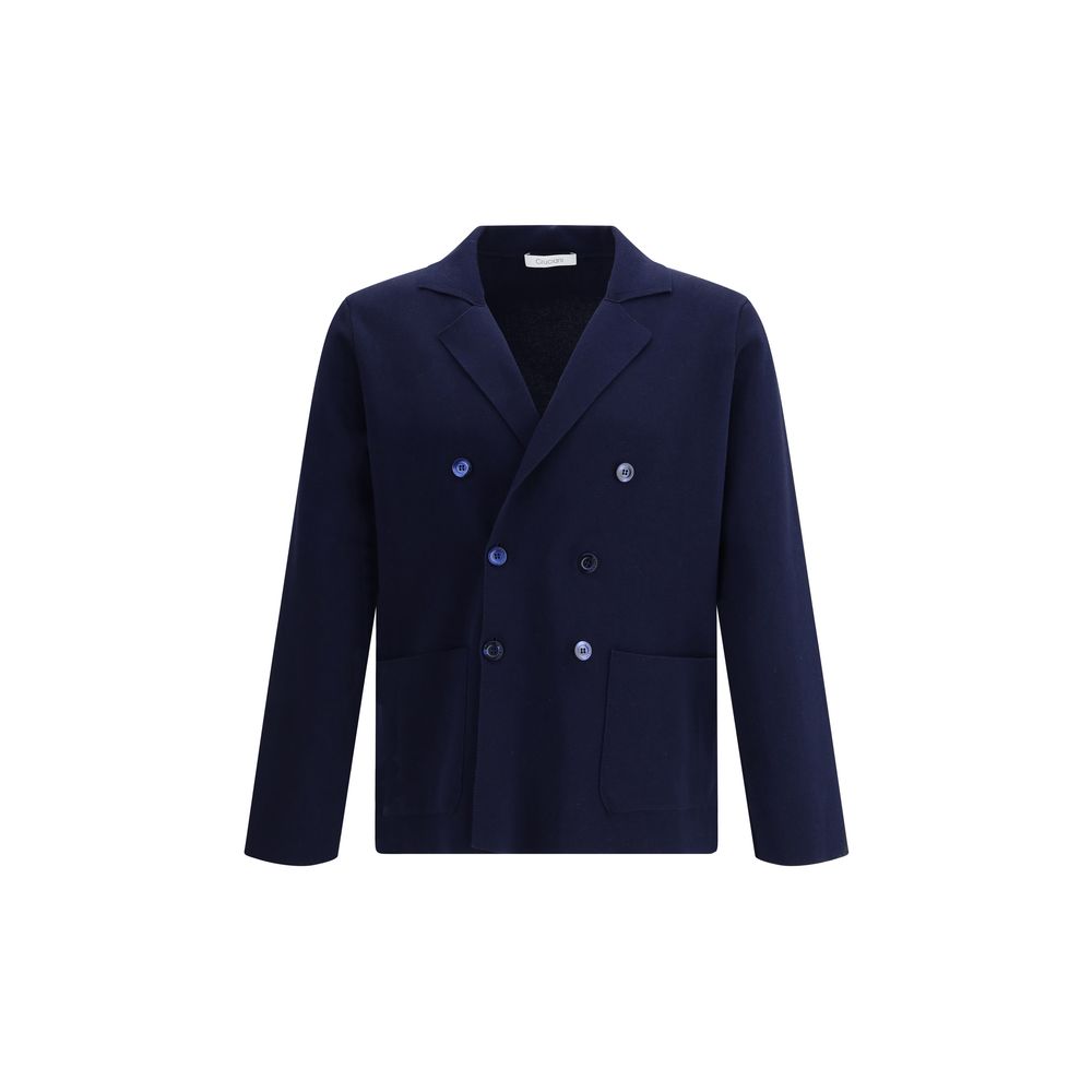 Cruciani’s Knit Jacket combines sartorial elegance and comfort. Featuring classic lapels and a double-breasted button closure, it has two patch pockets that complete the essential and refined design. Perfect for a sophisticated yet casual style.