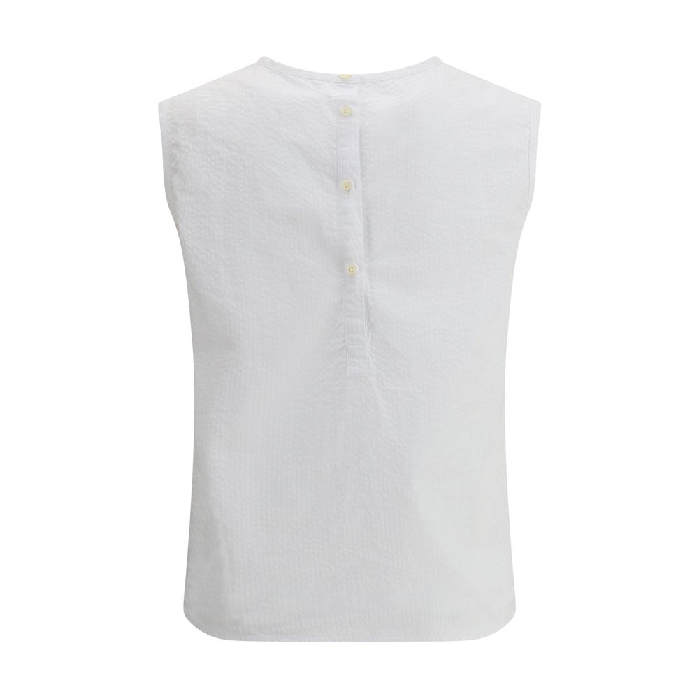Deperlù’s cotton Top is a cool and versatile garment perfect for the summer season. With a crew neck and sleeveless pattern, it offers a comfortable and lightweight fit. The back button closure adds a touch of understated elegance, while the striped print gives a dynamic and stylish look.