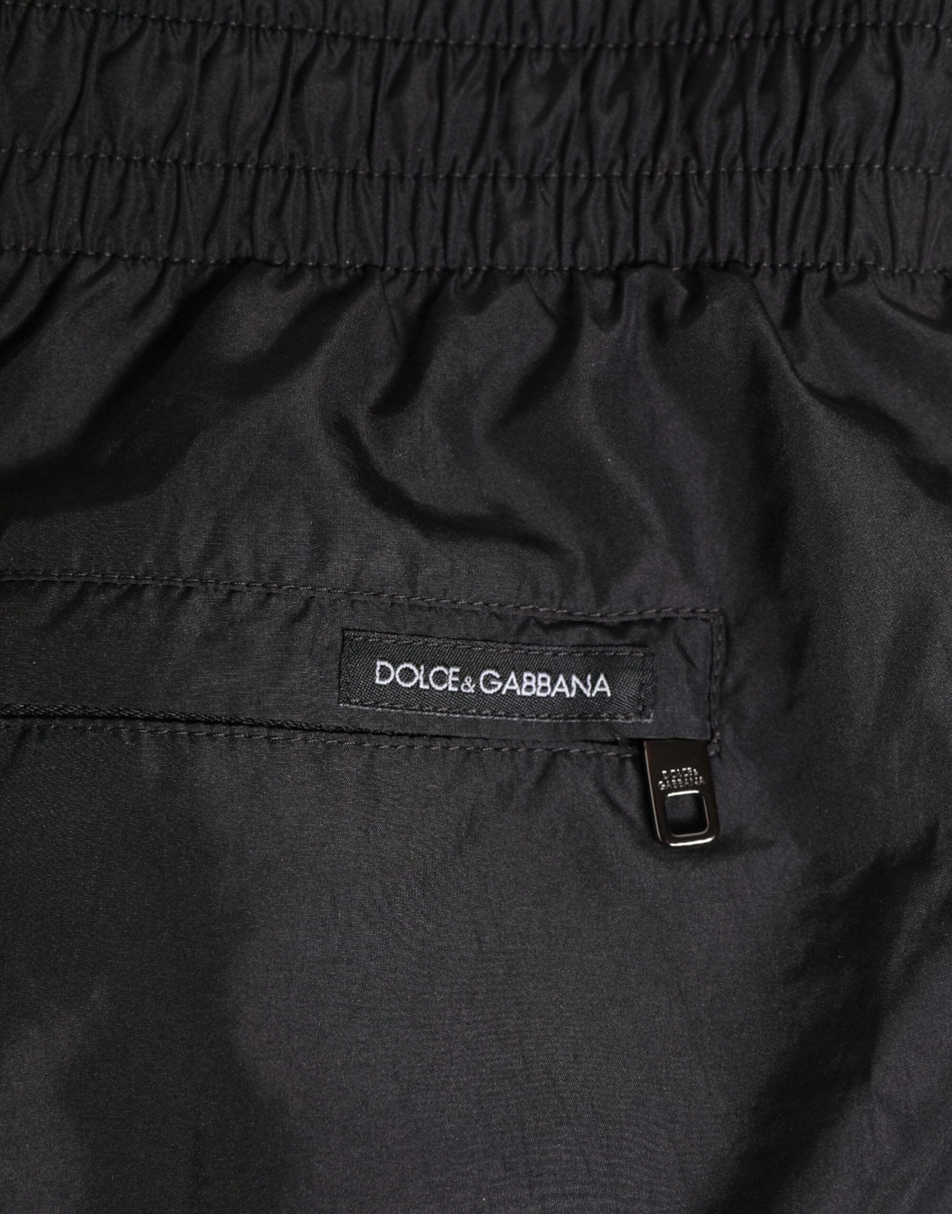 men’s swim shorts, crafted from lightweight nylon in a vibrant black shade. Features include a drawstring elastic waistband, white logo elastic detail, and side logo tape for a sporty finish. Comes with side pockets and a back zip pocket with logo zipper pull.