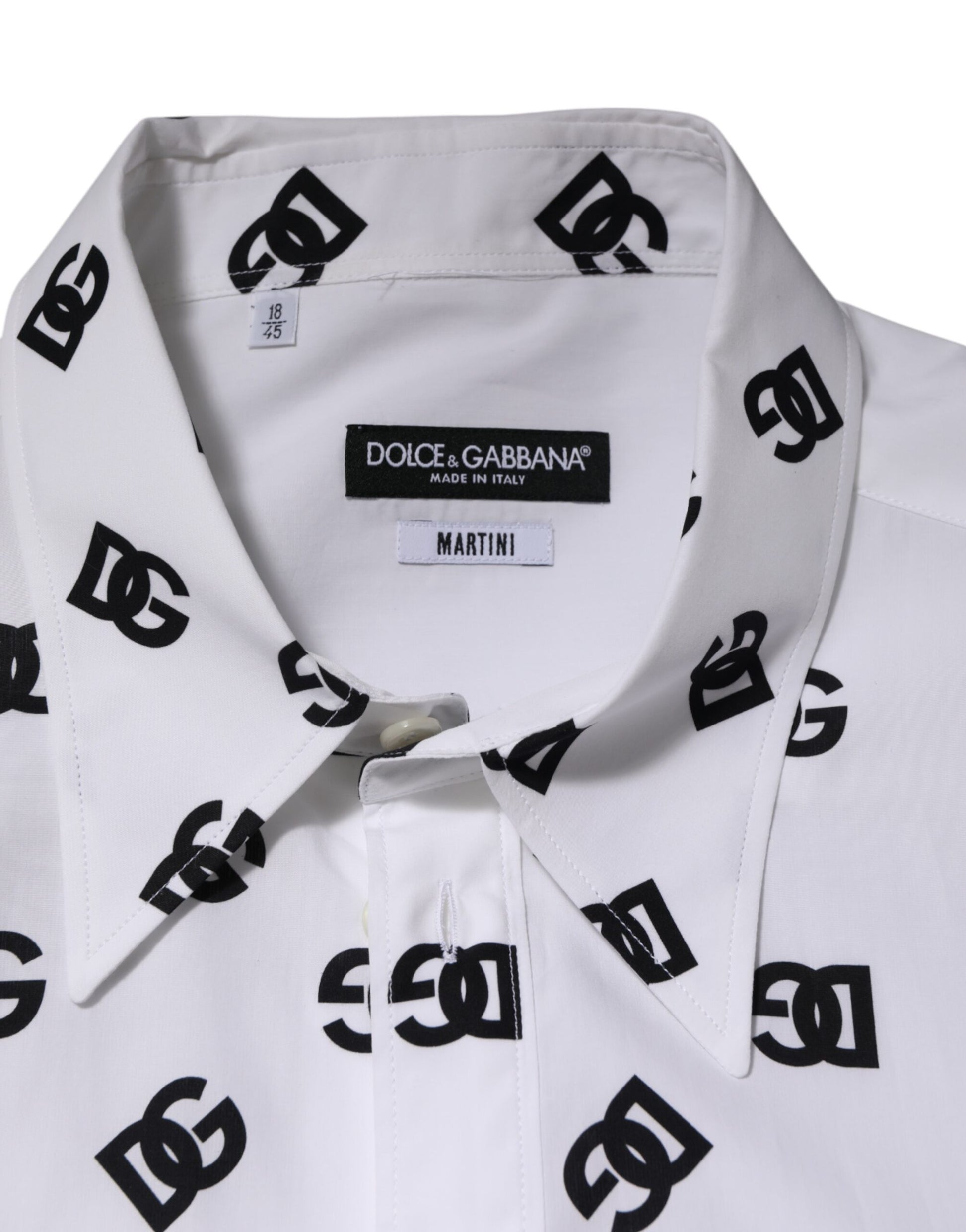 Absolutely stunning, 100% Authentic brand new Dolce & Gabbana men’s shirt crafted from premium cotton. This crisp white shirt features an eye-catching black DG logo print along the front, adding a modern and bold statement to a classic silhouette.