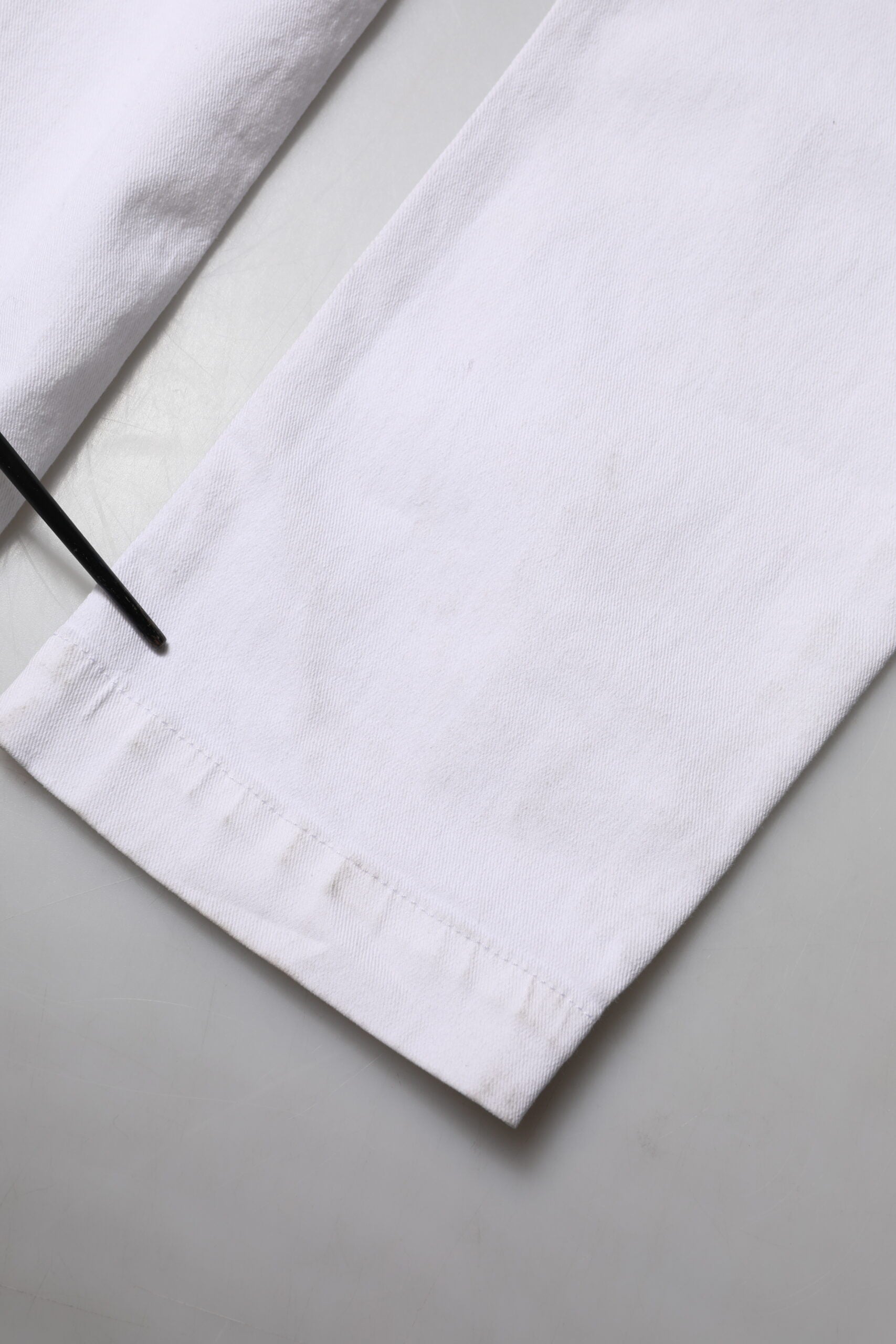 Very exclusive and high craftsmanshipThis item has a minor defect, there are marks on the lower end of the jeans (see pictures for details).