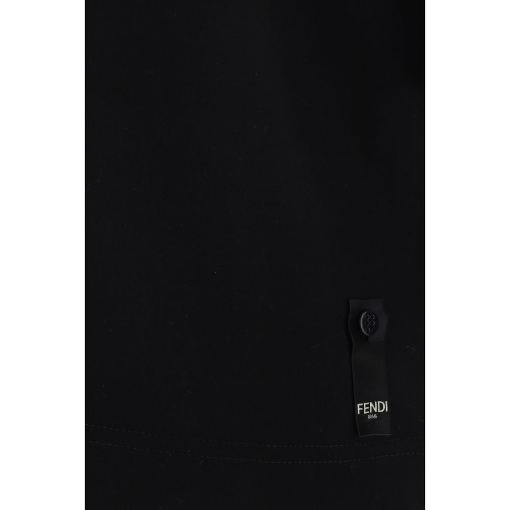 • Cotton T-Shirt by Fendi features a classic ribbed crew neck for comfort and durability. The design features the iconic FF logo applied in contrast on the front, a distinctive element that gives personality to the garment. The monochrome pattern lends elegance and versatility, while the regular fit ensures comfort and a modern look ideal for any occasion.