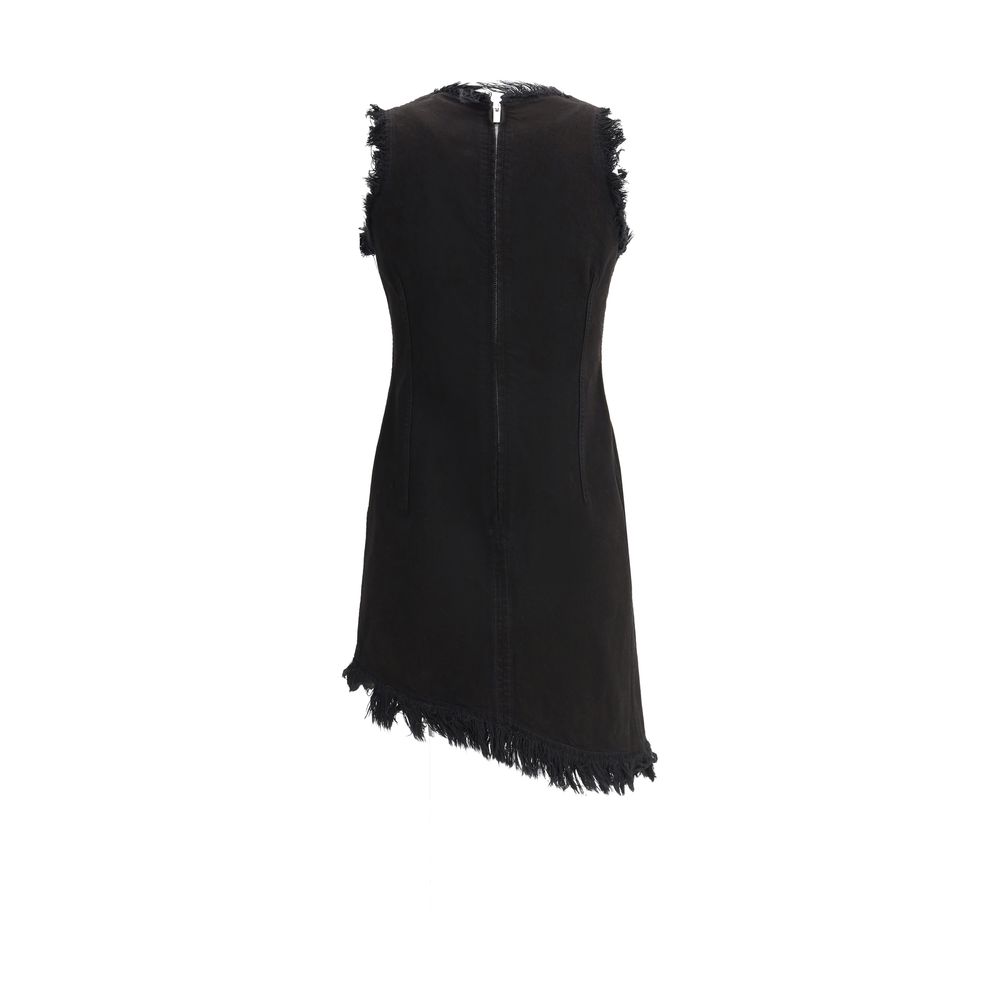 Ferragamo’s cotton mini Dress is a sleek, modern piece with a back zipper closure and sleeveless design. The denim design lends a casual touch, while the front neckline and frayed details along the edges add an element of character. The asymmetrical hemline completes the look, making it versatile and fashionable.