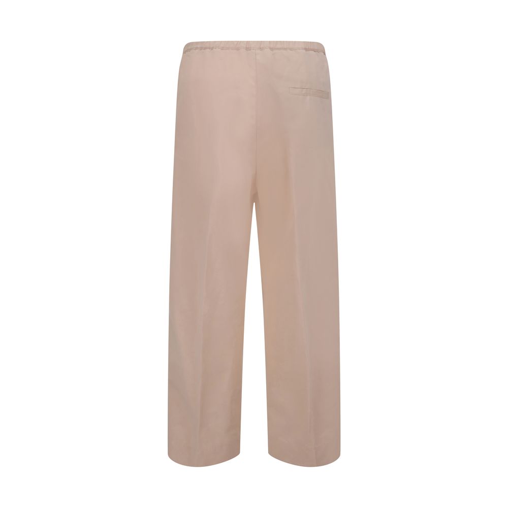 Forte_Forte’s cotton cropped pants are designed for relaxed, contemporary elegance. The essential design is enhanced by an elasticized waistband with adjustable drawstring for comfort and a customized fit. Two side welt pockets and back pockets add functionality to the garment without sacrificing clean lines. The cropped length and flowing cut make them ideal for summer, perfect for pairing with lightweight shirts or structured tops.