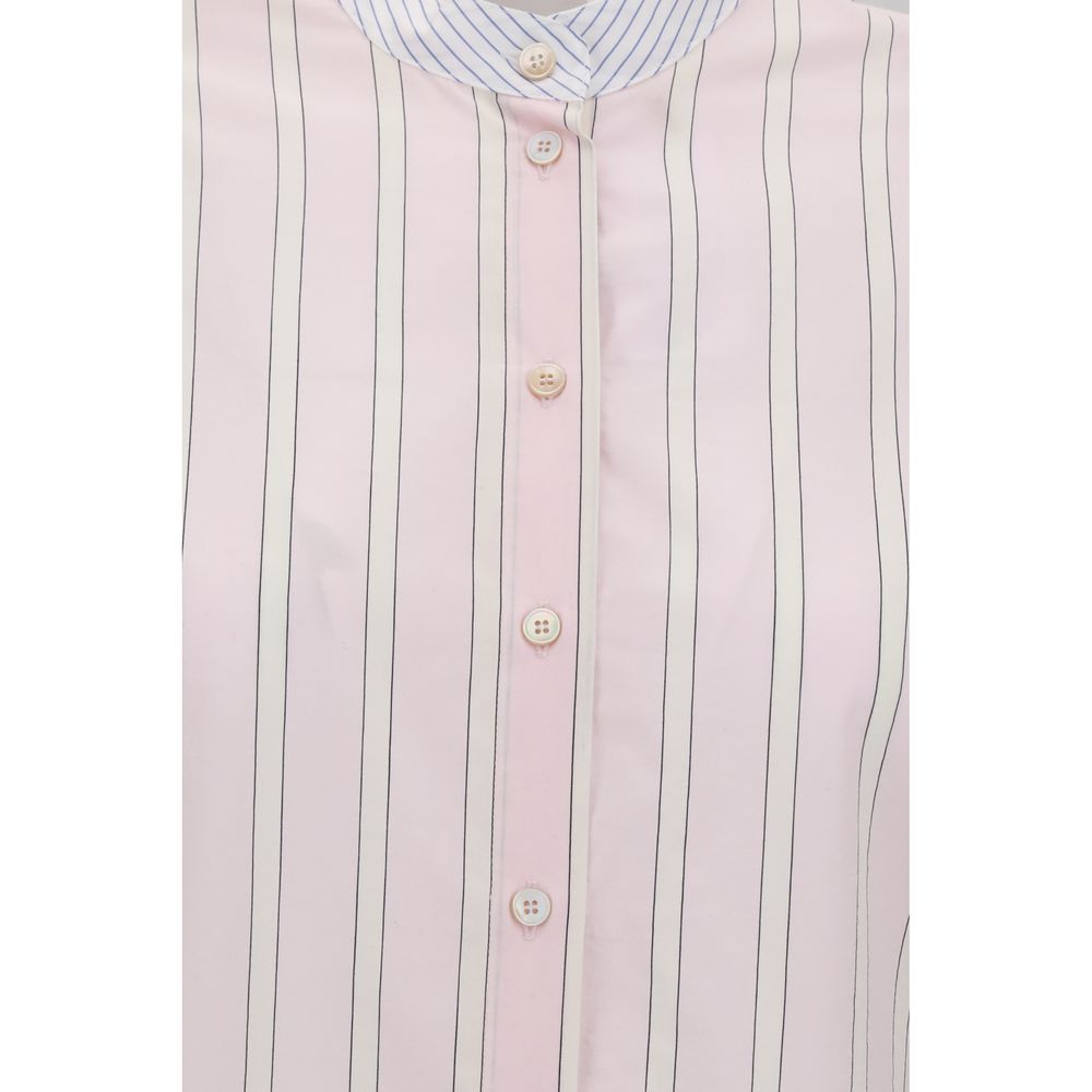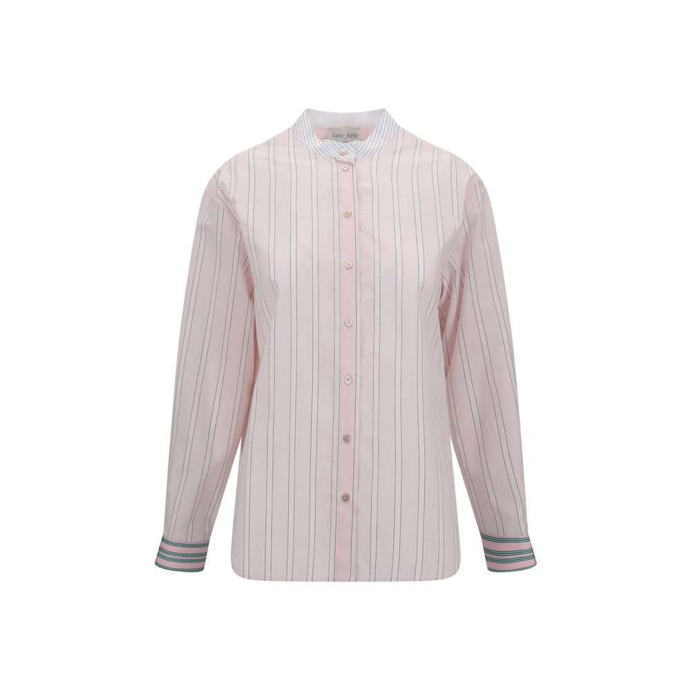 Forte_Forte’s Striped Shirt is an essential and sophisticated design, perfect for a relaxed yet detail-oriented style. The mandarin collar gives a contemporary and minimalist touch, while the front button closure maintains a discreet elegance. Exposed side seams add a tailored detail that enhances the construction of the garment. Lightweight and versatile, it is ideal for completing everyday looks with natural elegance.
