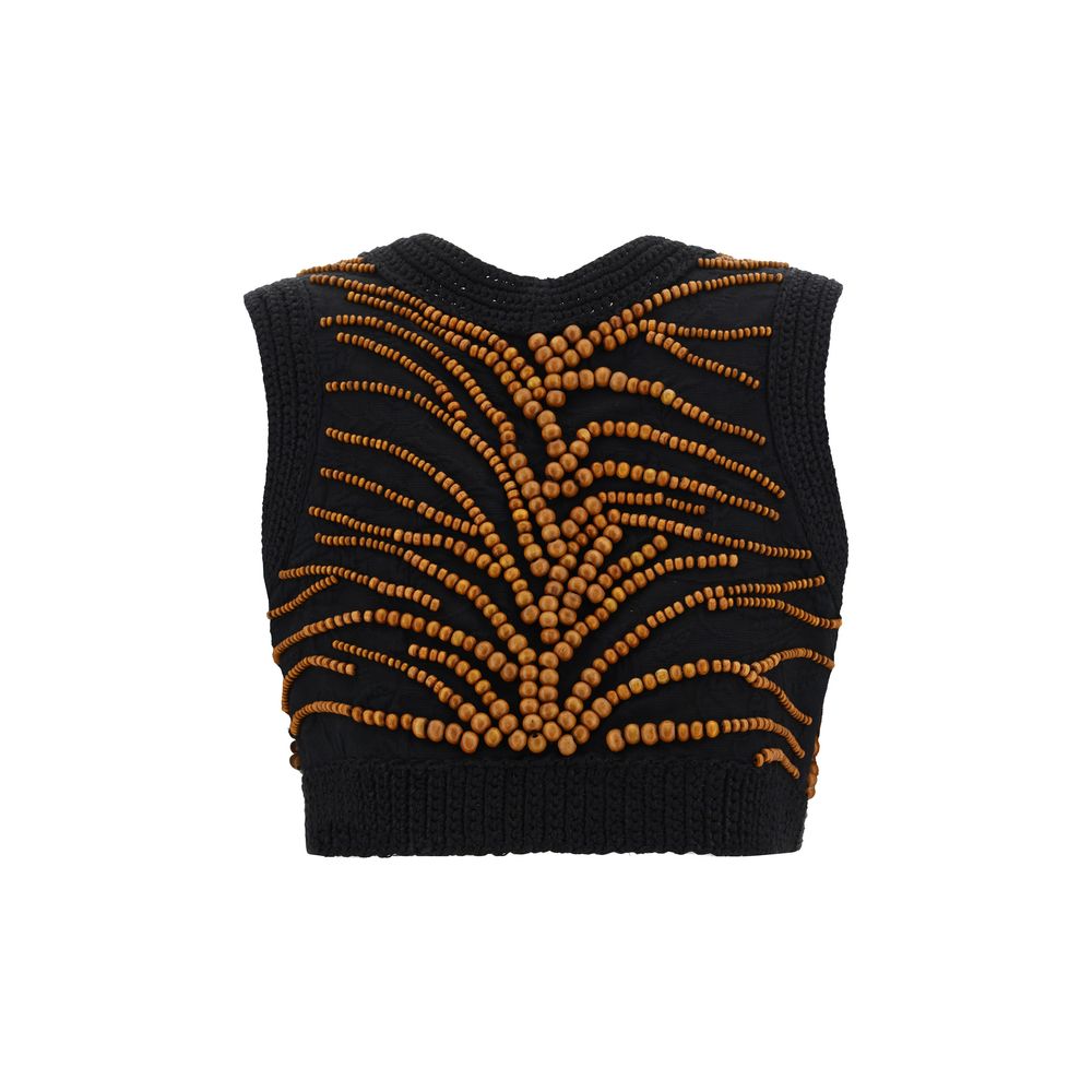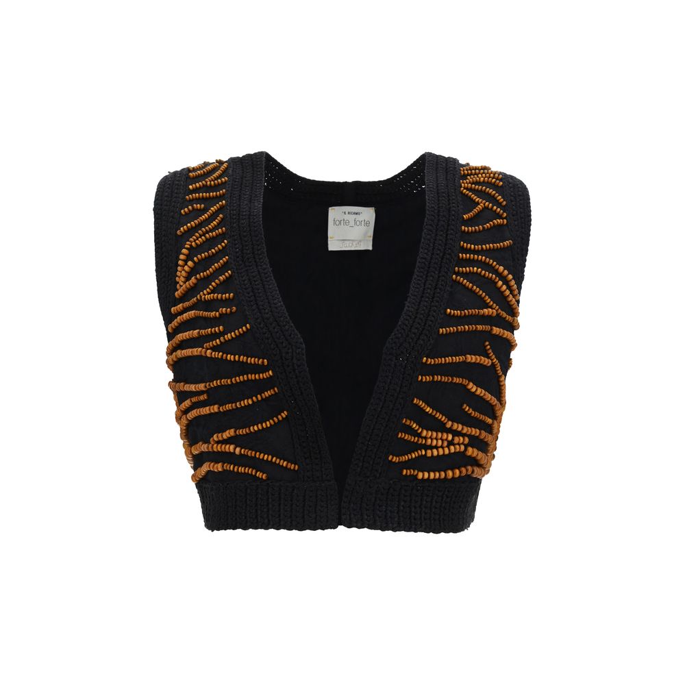 Cotton Vest by Forte_Forte, cropped pattern, V-neck front, all-over contrasting applique bead detail, regular fit.