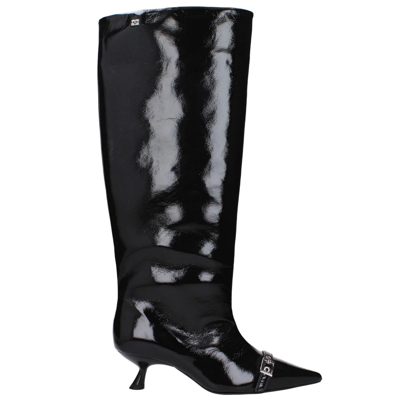The product with MPN S28354929099 and code F82919 patent leather in black is a boots designed by Ganni. It has features like side logo, front detail.Additional Info: