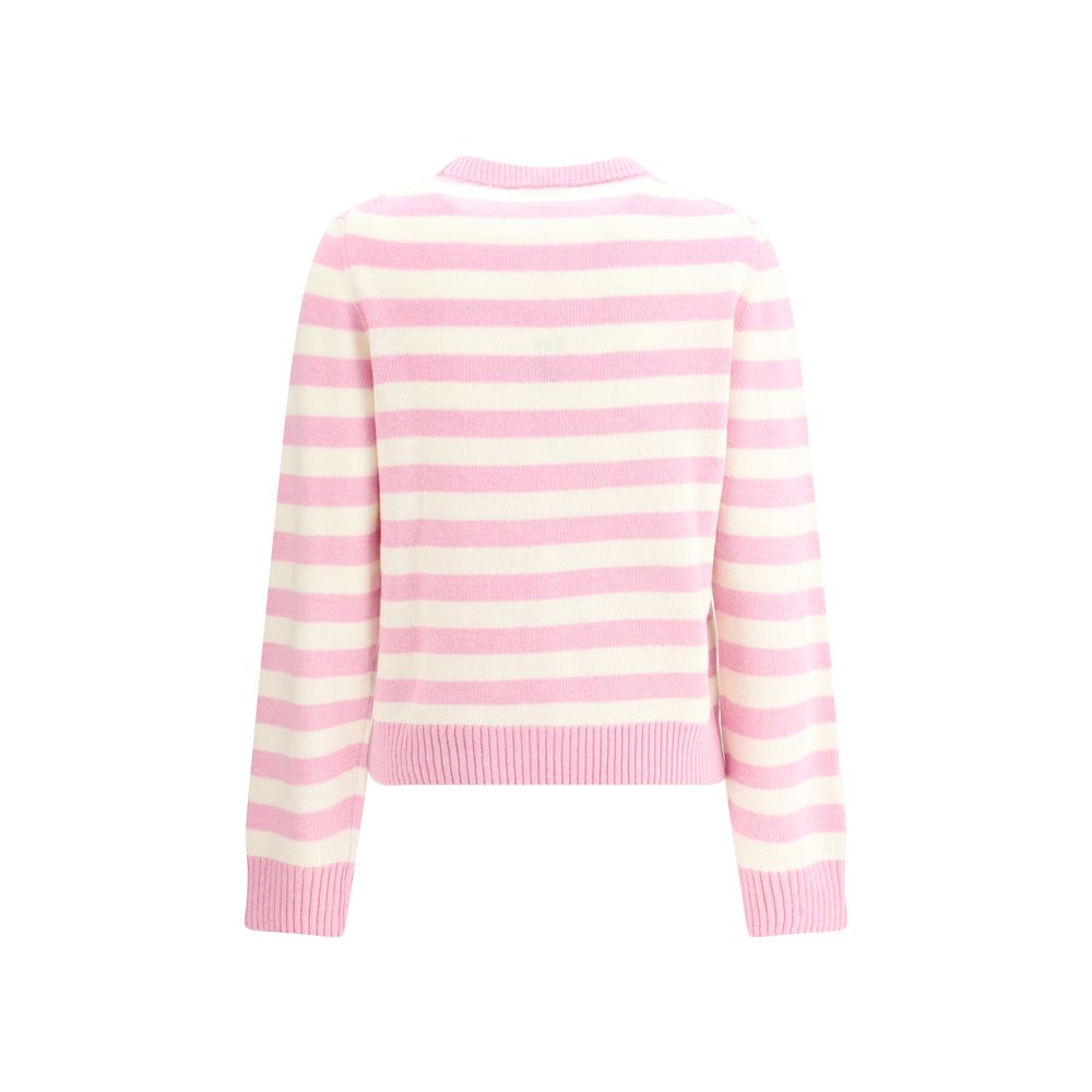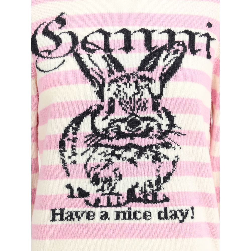 Wool Sweater by Ganni features a ribbed crew neck and two-tone striped design. The iconic maxi monogram with contrasting rabbit print on the front gives the garment a playful and distinctive touch. A warm sweater with a strong character, perfect for adding personality to winter looks.