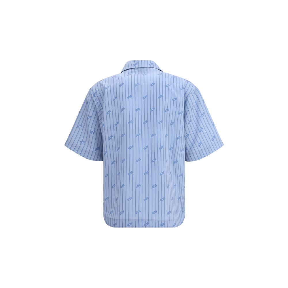 The Pinstripe Bowling Shirt by GCDS is a garment with a relaxed yet bold style, perfect for the warm season. Made of lightweight fabric, it features short sleeves, a classic collar and front button closure. The vertically striped design is embellished with the iconic GCDS contrasting all-over repeated monogram for a distinctive graphic effect. Small side slits at the hem complete the look, offering more freedom of movement and a casual touch. Ideal for urban or vacation outfits with a strong stylistic character.