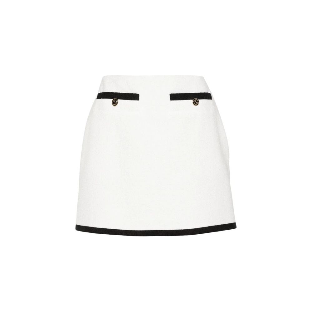 – Composition: 91% Cotton 9% Polyamide – Lining: Viscose – Hand wash – Zipper closure – Low waist – Pocket lining: 100% Cupro – Chalk-colored cotton tweed – Black finishes – Enamel buttons with round GG cross – Two front pockets with buttons – Made in Italy – Gender: WOMEN –Size & Fit: