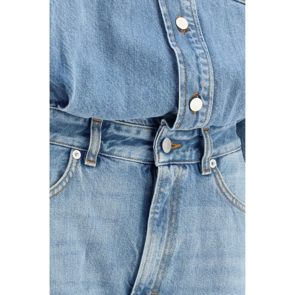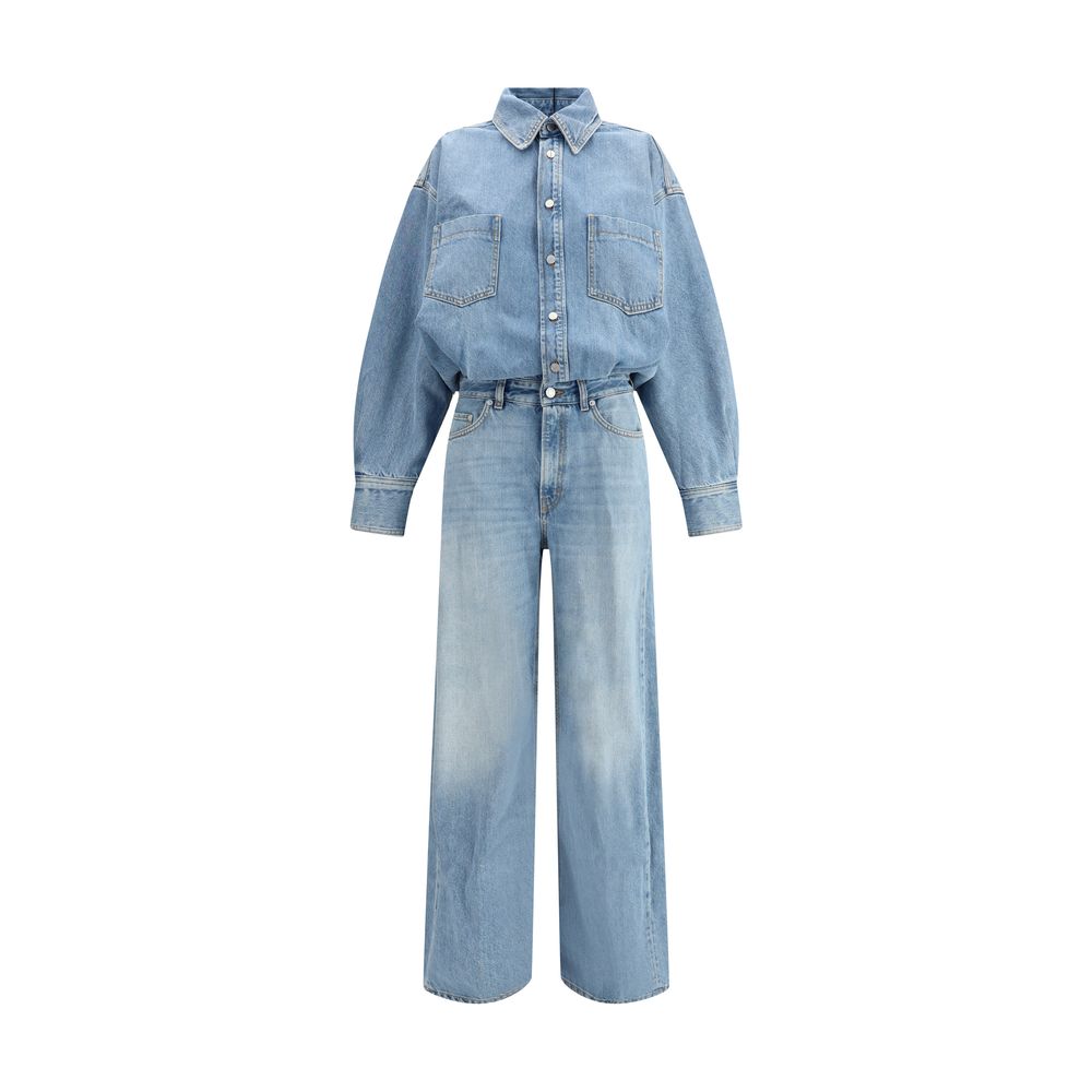 The Tilda jumpsuit by Haikure is a chic and versatile piece that seamlessly combines practicality and style. The front button fastening and classic collar give it a sophisticated look, while the two patch pockets on the front add a touch of functionality. The five-pocket design, with belt loops at the waist, allows you to further customize the look with a belt, giving the jumpsuit a more structured touch. The zip and button closure on the trousers ensures a secure and comfortable fit.