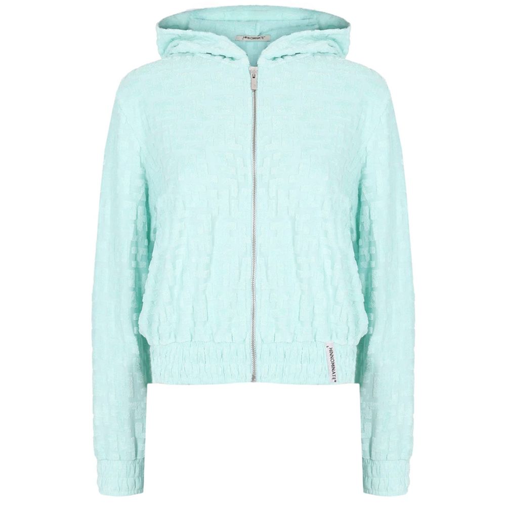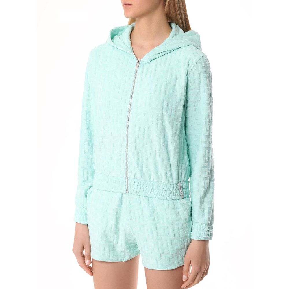 Hinnominate cotton blend terry hoodie with zip fastening, all-over Hinnominate pattern print