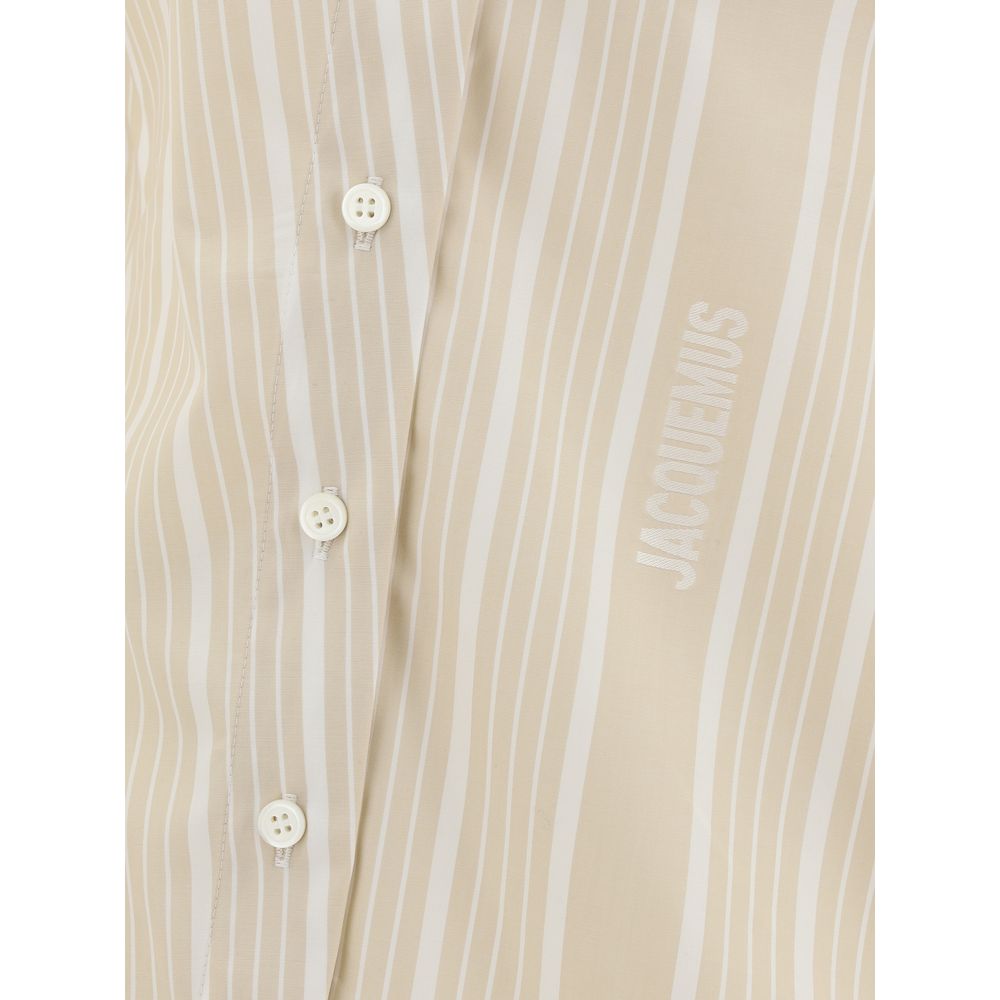 Jacquemus La Chemise Pablo Shirt features a classic collar and an asymmetrical front button closure. A front patch pocket adds practicality, while the striped pattern and the brand’s iconic signature printed all-over give the piece a distinctive and modern touch. A versatile and trendy item, perfect for an elegant and contemporary look.
