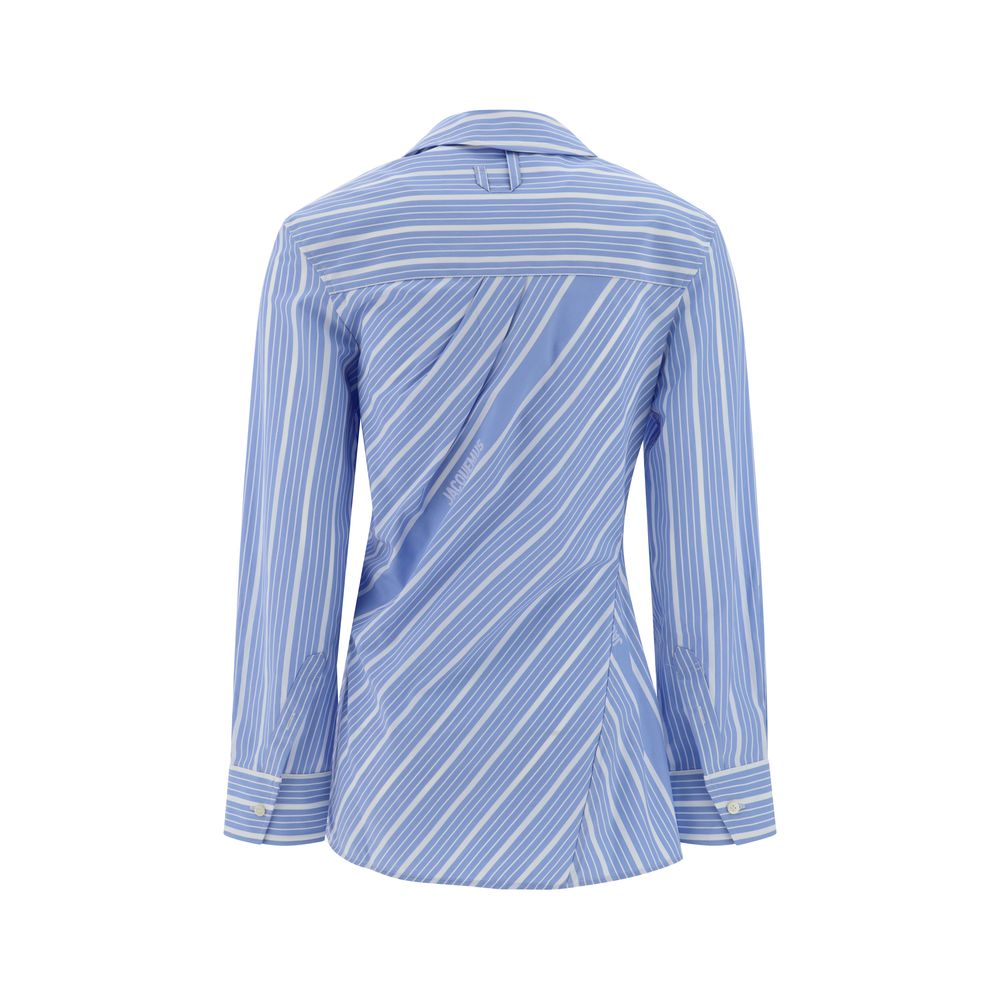 Jacquemus La Chemise Pablo Shirt features a classic collar and an asymmetrical front button closure. A front patch pocket adds practicality, while the striped pattern and the brand’s iconic signature printed all-over give the piece a distinctive and modern touch. A versatile and trendy item, perfect for an elegant and contemporary look.