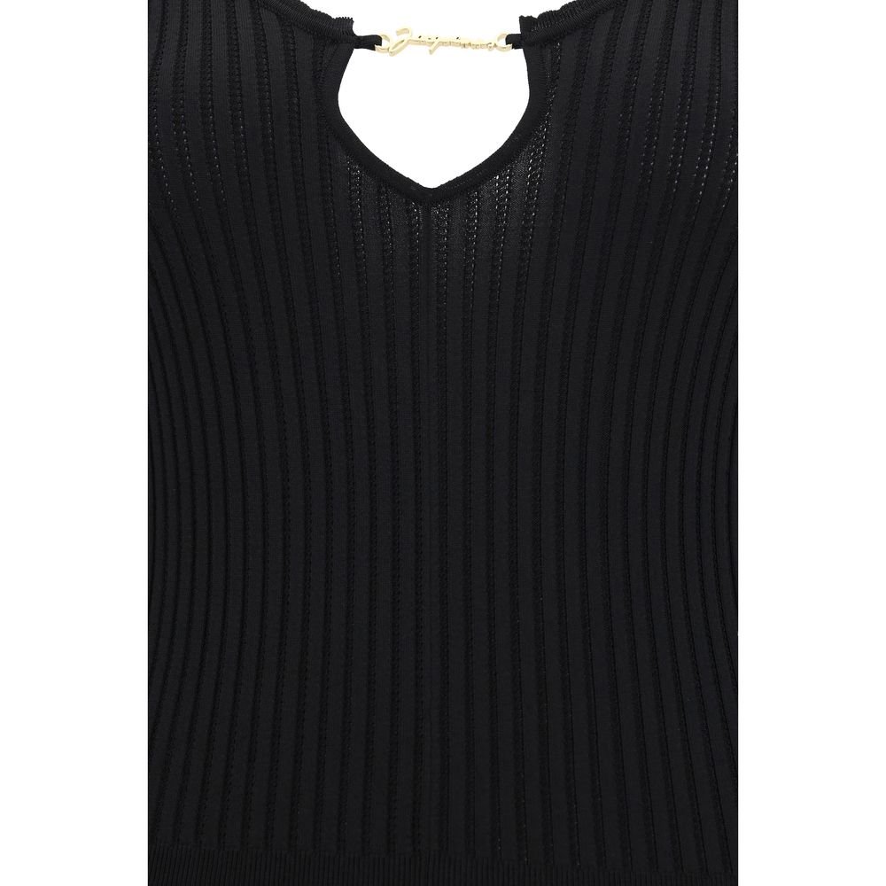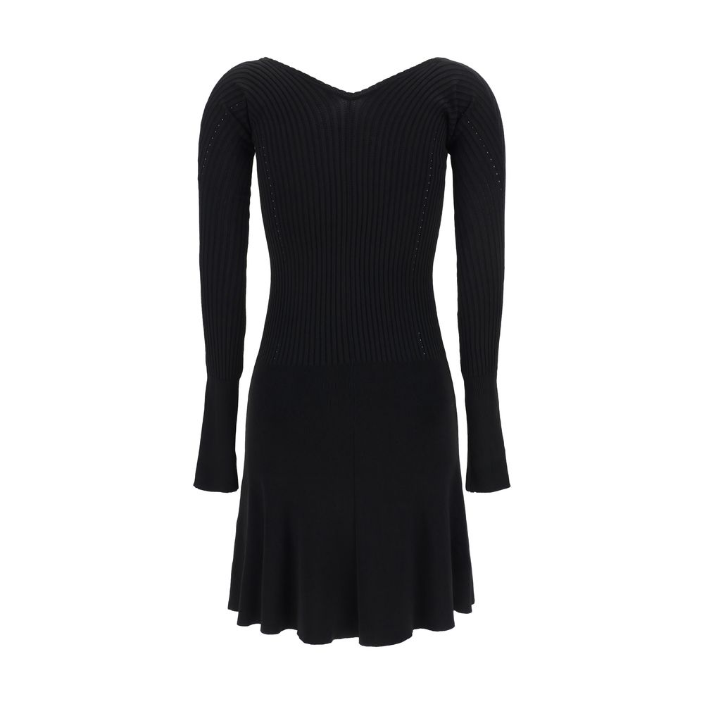 The La Mini Robe Pralu Dress by Jacquemus features a wide V-neck at the front, enhanced by an appliquéd three-dimensional plaque detail that adds a touch of originality and sophistication. Long sleeves complete the design, while the flared skirt lends elegant movement. The fitted fit enhances the silhouette, making this dress ideal for a sophisticated and modern look.