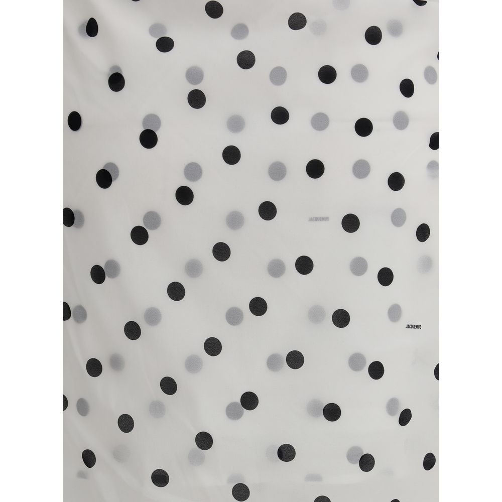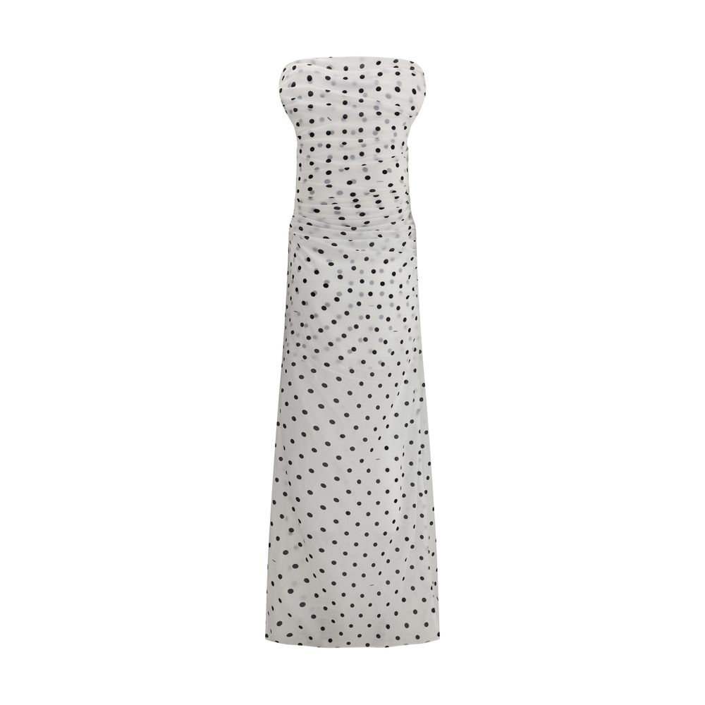 The Rita Long Dress by Jacquemus is an elegant and sophisticated garment featuring a feminine and modern design. The sleeveless V-neck front enhances the figure, while the draping along the sides adds movement and fluidity to the garment. The two side slits give a touch of discreet sensuality, while the polka dot pattern gives the dress a playful and chic air. Perfect for special occasions or a refined look, this dress combines comfort and style with a distinctive note of contemporary elegance.