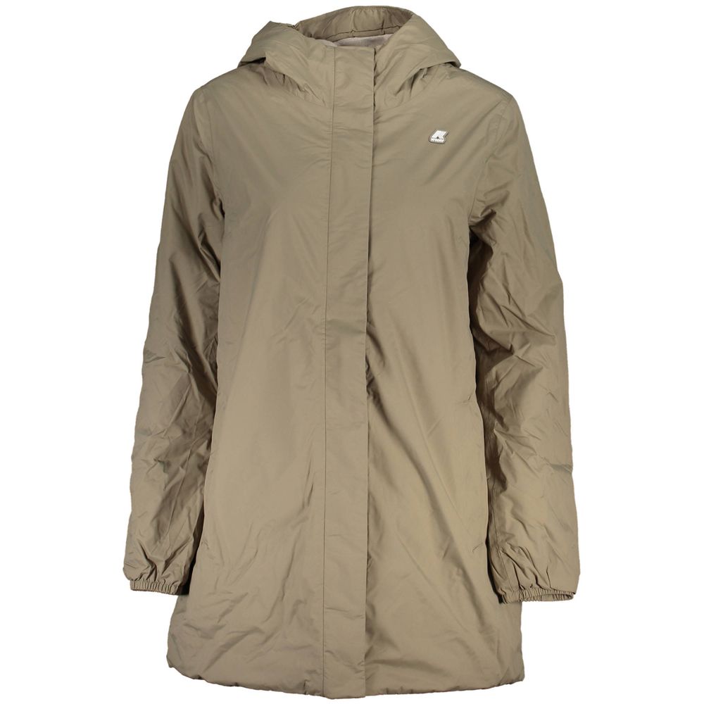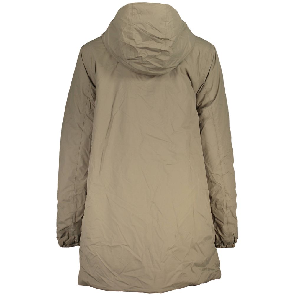 long jacket with hood, plush interior, 2 external pockets, 1 internal pocket, contrasting details, application, logo
