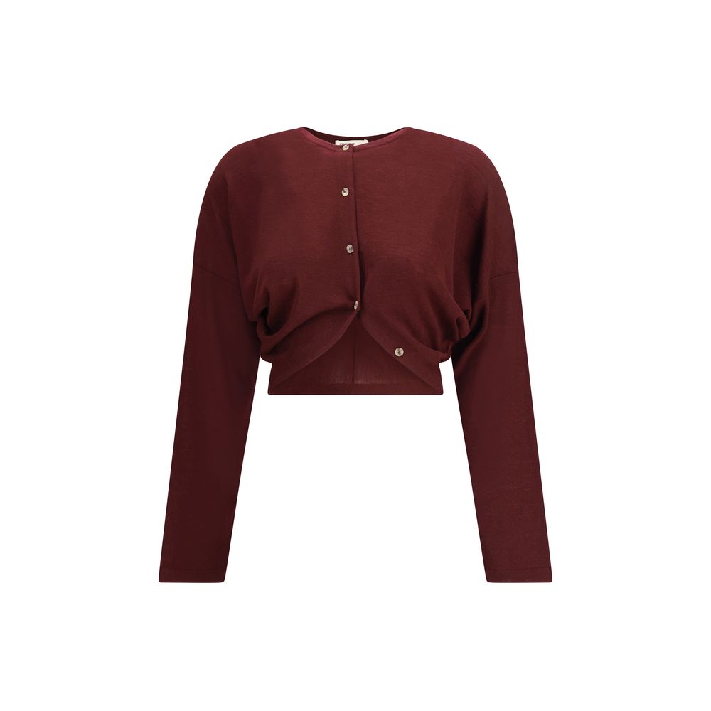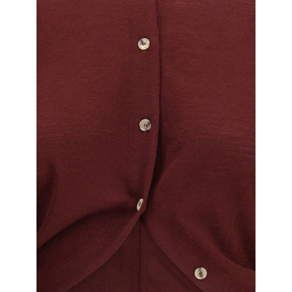 The Khaite crewneck Cardigan blends sophisticated elegance with timeless comfort. Crafted from fine Merino wool, it features a jersey stitch, a slightly slouchy fit, and a draped body with a continuous placket and tortoiseshell buttons, creating a refined and versatile piece perfect for standalone wear or layering.