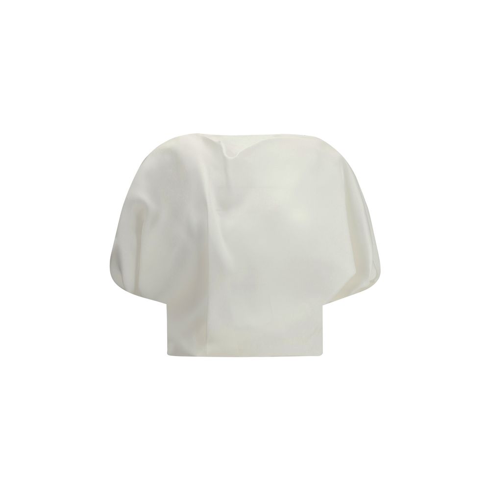 Niles Silk Top by Khaite, boat neckline, short sleeve design, pleat detail creates softly rounded silhouette, keyhole back button closure, monochrome pattern, regular fit.