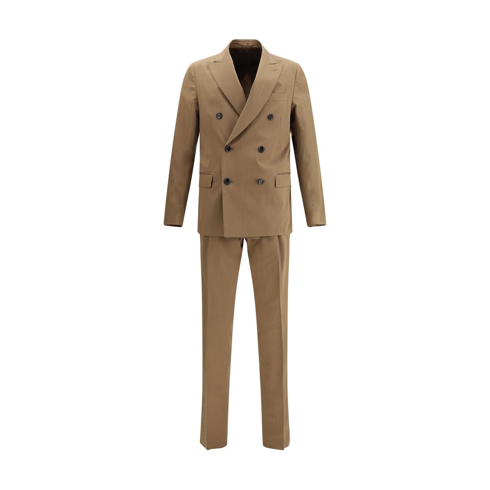Lardini’s double-breasted cotton Suit embodies Italian sartorial elegance with a refined, contemporary design. Featuring a six-button closure and peaked lapels, the jacket offers a sophisticated silhouette, enhanced by flap pockets and the brand’s iconic buttonhole flag. Straight-cut pants ensure an impeccable fit, completing a versatile and distinctive look, ideal for any formal occasion.