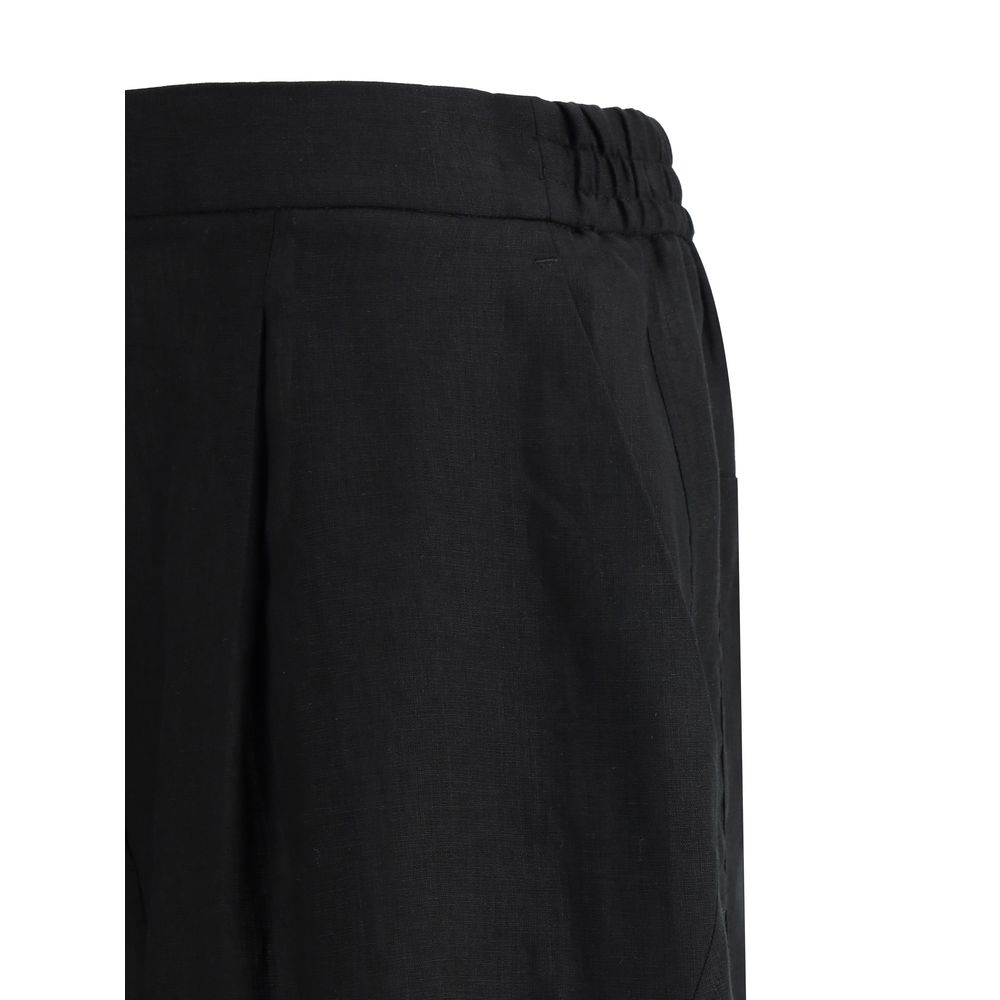 Lardini’s Linen Pants offer the perfect blend of comfort and elegant style. The front zip and hook fastening ensures a secure fit, while the elasticated waistband at the back adds practicality and adaptability. The two side welt pockets and patch pockets at the back add functionality to the design without compromising aesthetics. The balloon design creates a unique silhouette, giving a soft and fluid effect at the top of the leg for a modern and relaxed look. These trousers are ideal for those looking for a versatile and sophisticated piece for the summer or spring season.