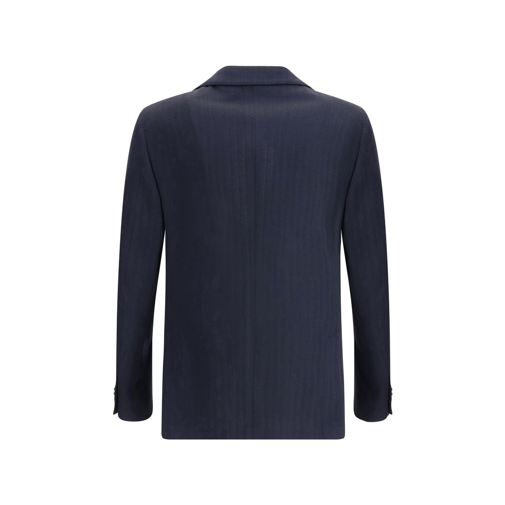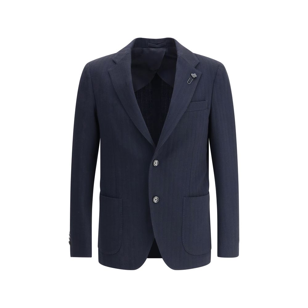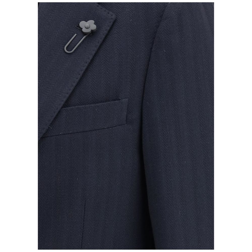 Lardini’s single-breasted Blazer is a timeless garment, a symbol of elegance and sartorial mastery. The classic lapels lend a sophisticated line, while the front button closure keeps the look clean and refined. The two front patch pockets and welt pocket are practical yet elegant, adding a functional touch to the design. The iconic flower brooch appliqué on the lapel is the distinctive detail that makes this blazer a true style piece, a nod to Lardini’s famous craftsmanship that does not go unnoticed. Perfect for those seeking a sleek and modern look, this blazer is ideal for both formal occasions and sophisticated daytime outfits.