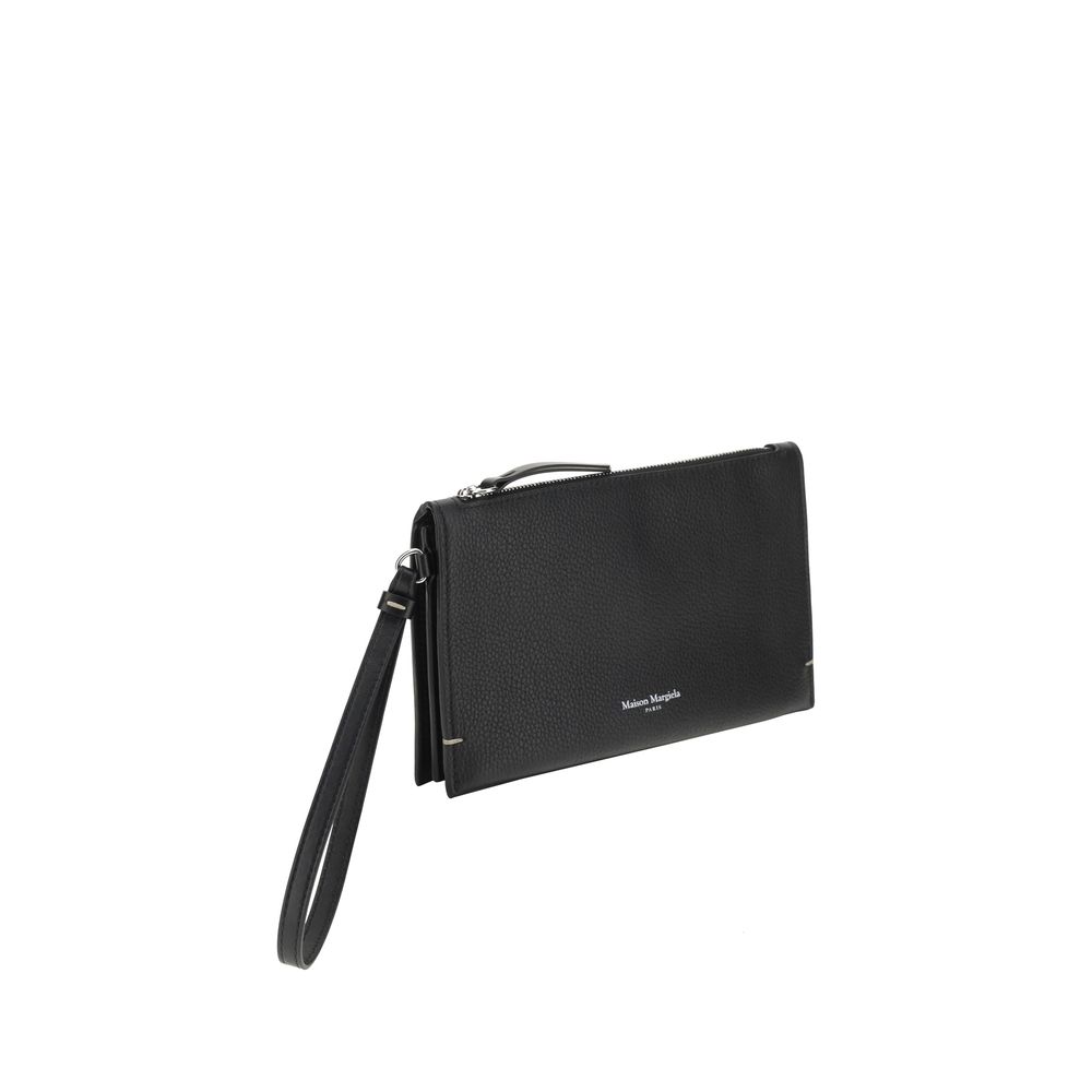 Crafted in fine grained leather, Maison Margiela’s medium leather Clutch combines functionality and style in an essential yet distinctive design. Featuring a top zipper closure, it provides practicality and security to store personal items with elegance. The iconic contrasting press-on monogram, positioned on the front, signs the model with the unmistakable Maison touch. A versatile and sophisticated accessory, perfect both to carry by hand and to insert in a more capacious bag, for a contemporary and minimal elegance.