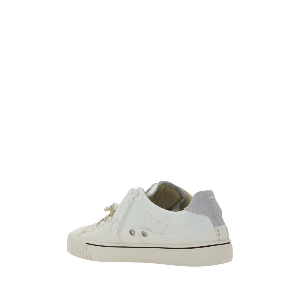 Calfskin New Evolution Sneakers by Margiela, rubber reinforced round toe, front lace-up closure, flat sole, patch with iconic brand signature applied tone on tone on front tab.