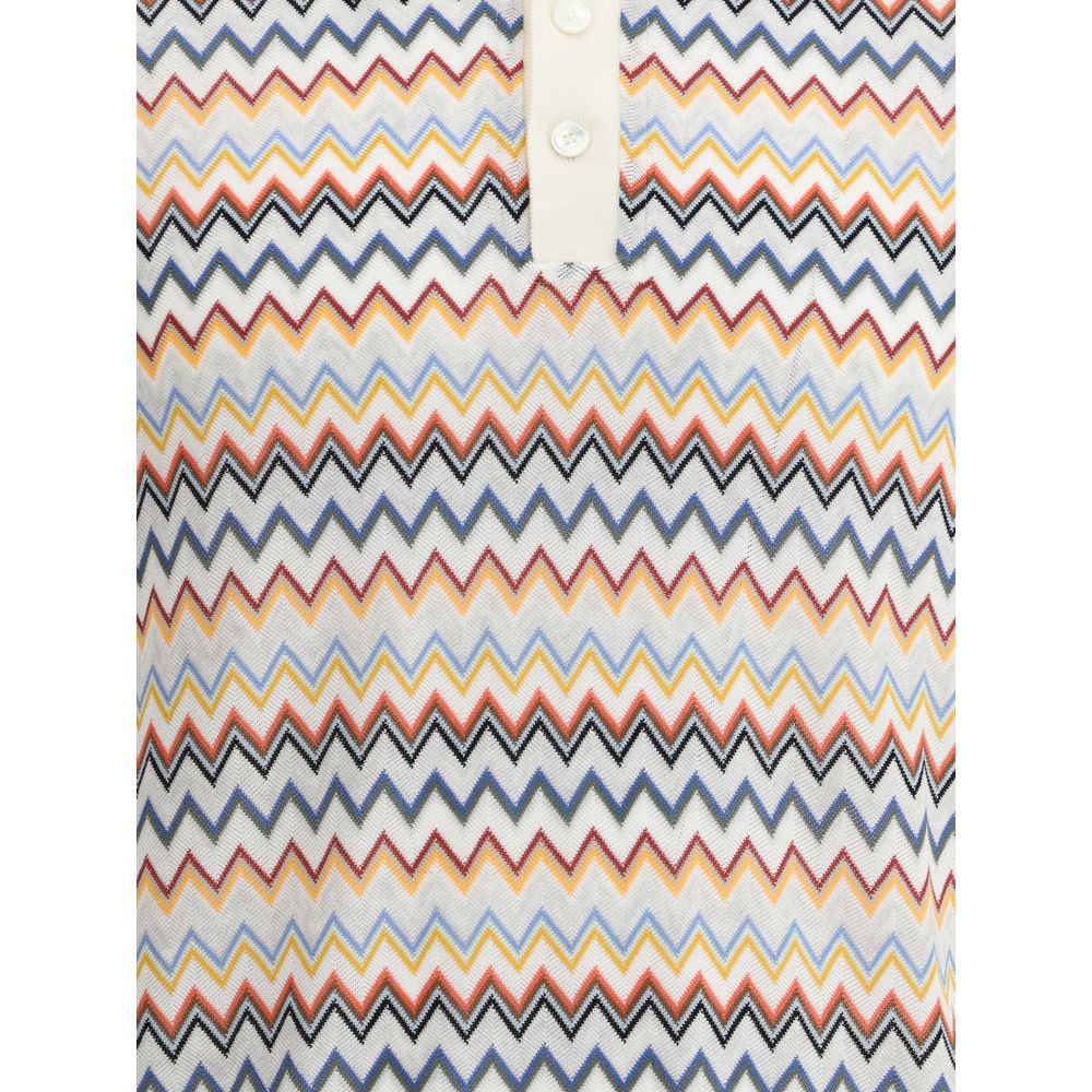 Missoni’s knit Polo Shirt is a distinctive garment, enhanced by the vibrant multicolored ZigZag weave, the brand’s iconic symbol. The ribbed collar and hem add structure to the design, while the three-button front closure recalls the classic style, revisited with Missoni’s typical elegance and creativity.