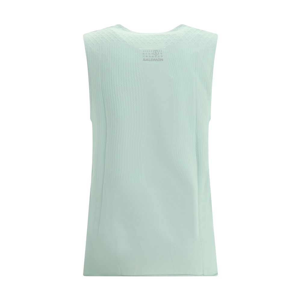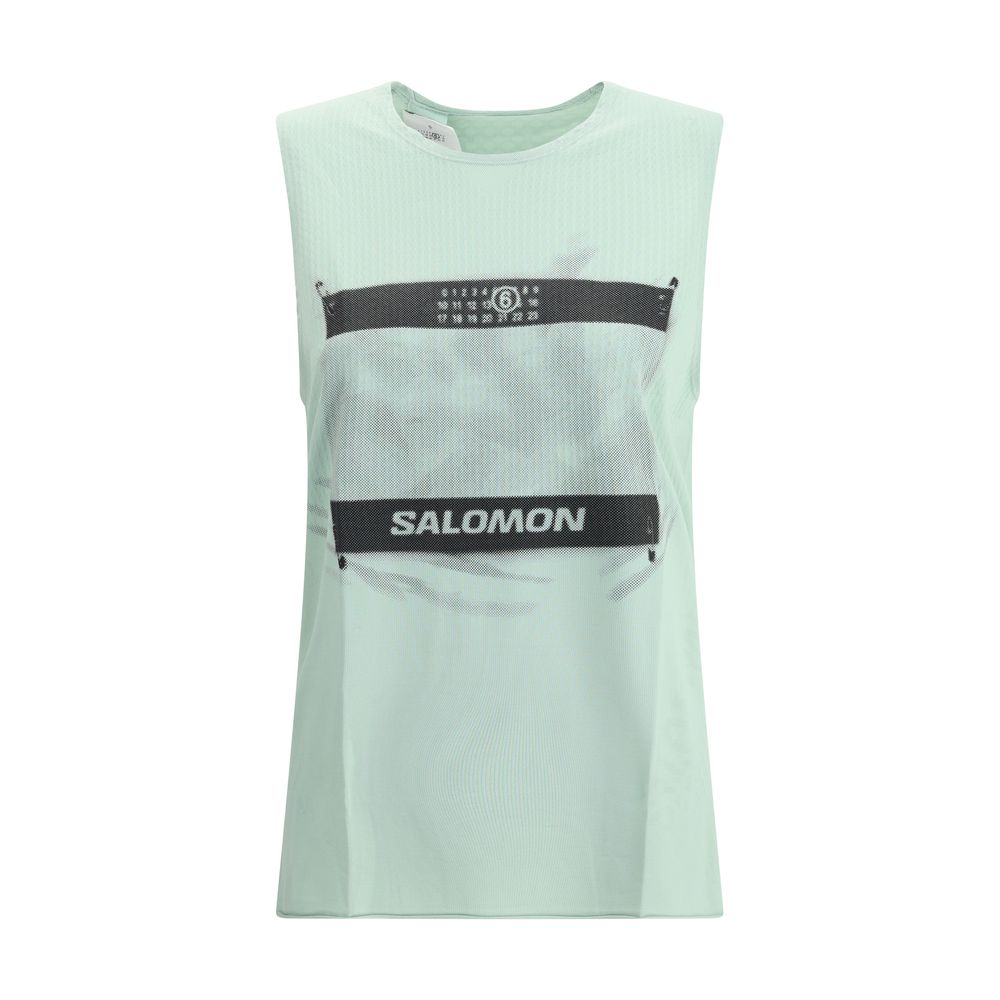The MM6 X Salomon Tank Top is a sporty and stylish piece, perfect for a casual yet distinctive look. Featuring a crew neck, it features the iconic logos of the collaboration printed on the front, adding a recognizable and modern touch. A simple design but with a strong visual impact, ideal for those who like to combine functionality and style.