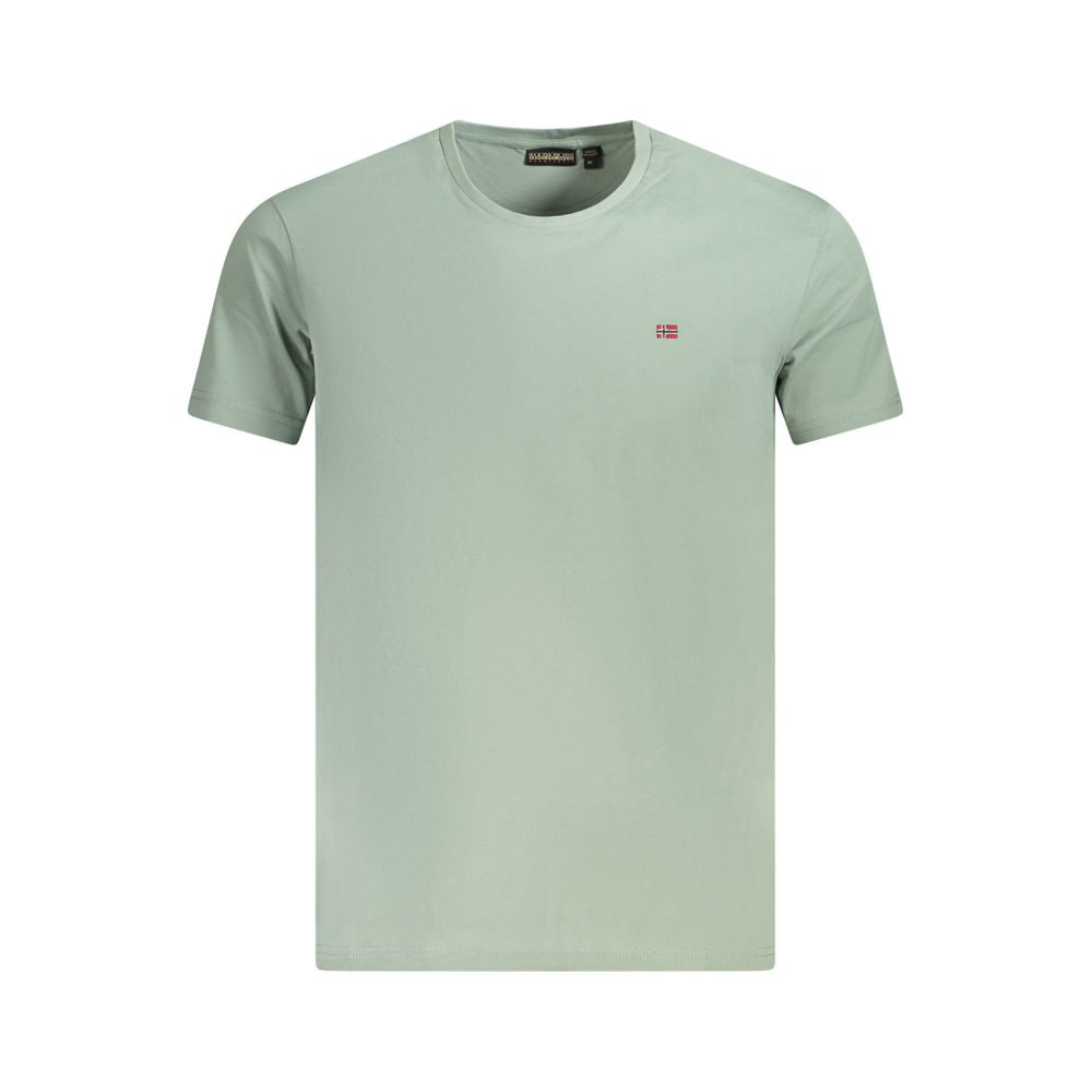 Elevate your everyday style with this bold Napapijri short-sleeve T-shirt. In a striking green hue, it embodies casual elegance with its regular fit and classic crew neck. The signature embroidery and prominent logo infuse a trendy touch to your apparel. Crafted from soft cotton for ultimate comfort, it’s a staple item poised to stand out with its unmistakable Napapijri charm.
