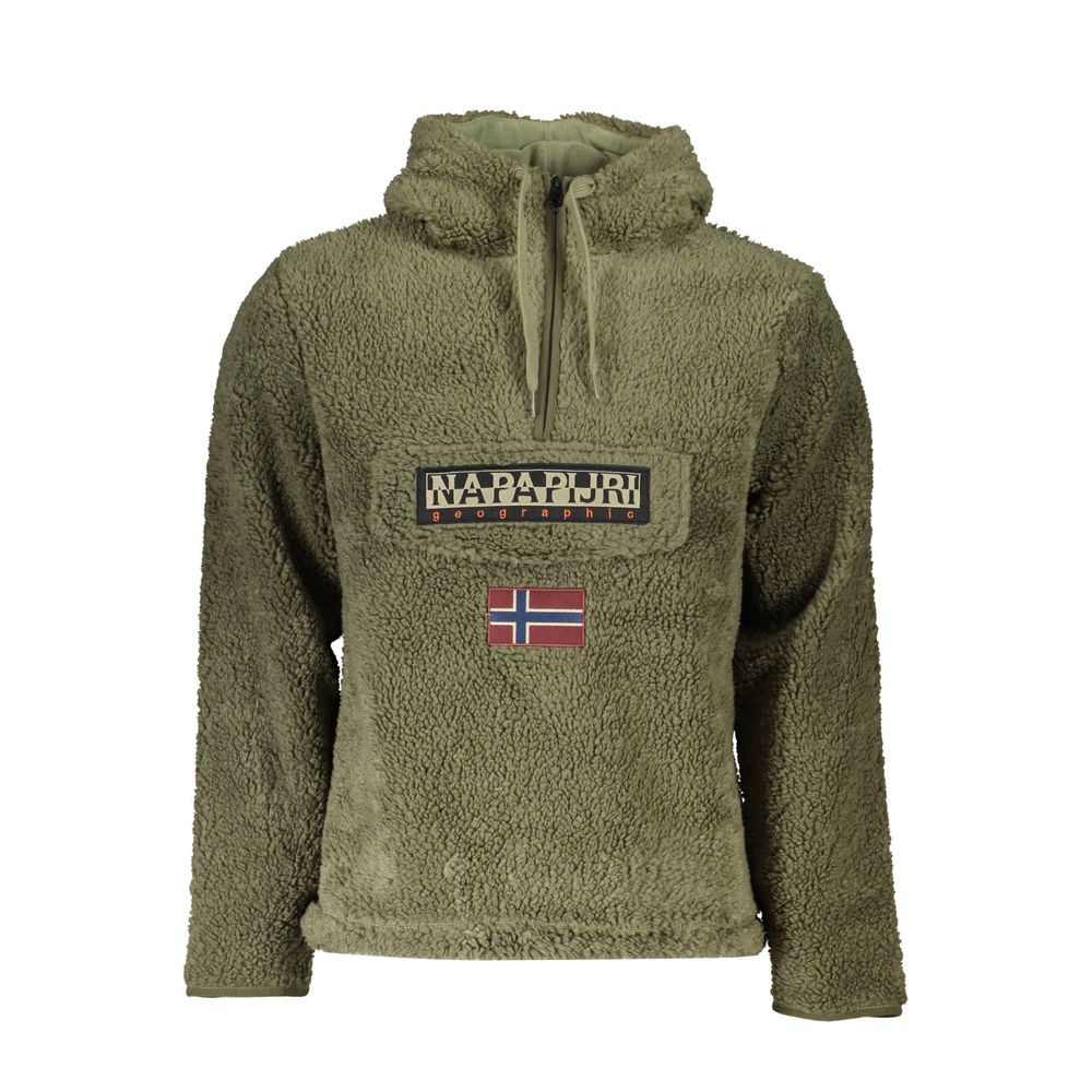 long-sleeved jacket with hood, 1 central pocket with zip and velcro closure, half zip, application, logo