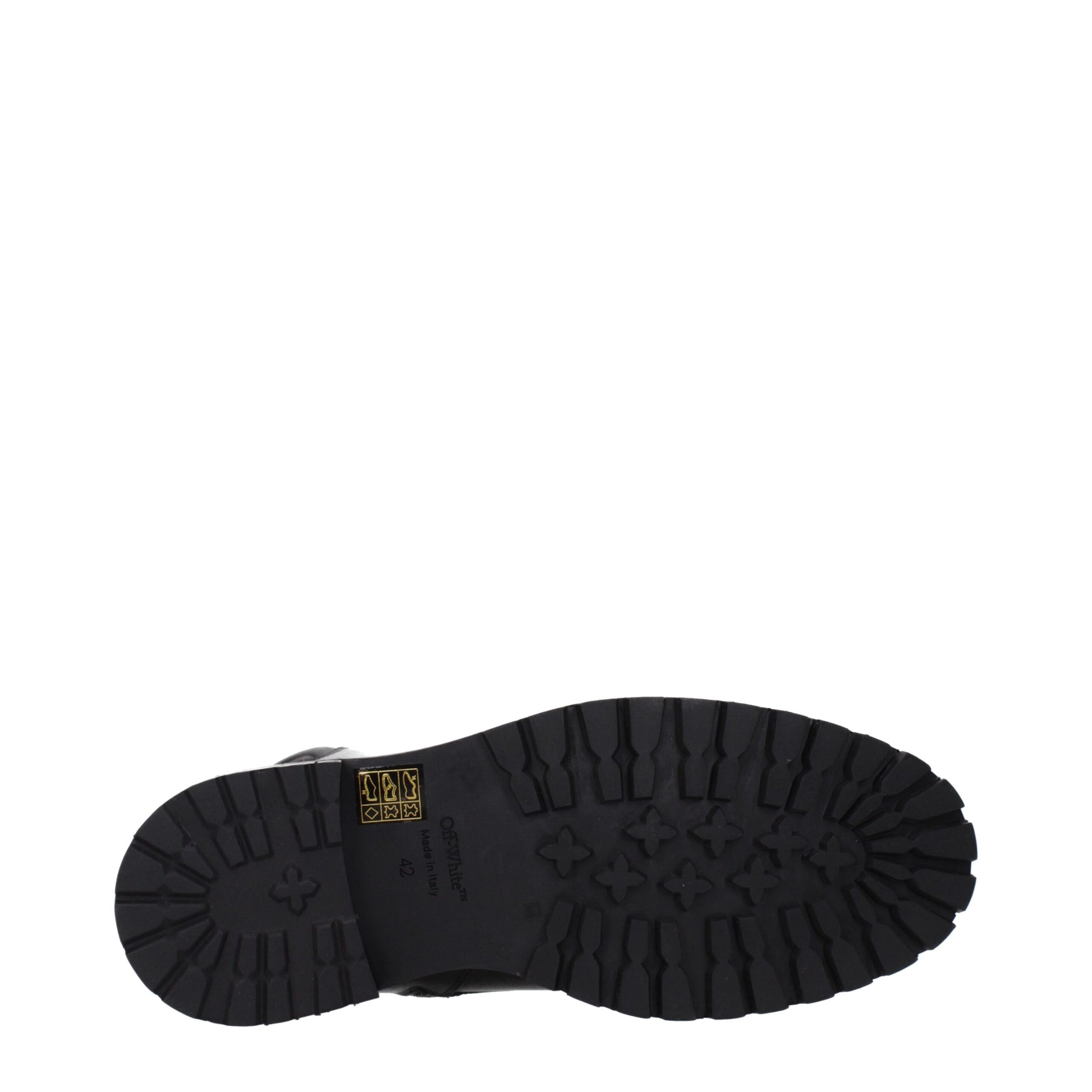 The product with MPN OMID025LEA0011010 and code F84974 leather in black is a ankle boots designed by Off-White. It has features like side logo, vintage effect, aged effect.-