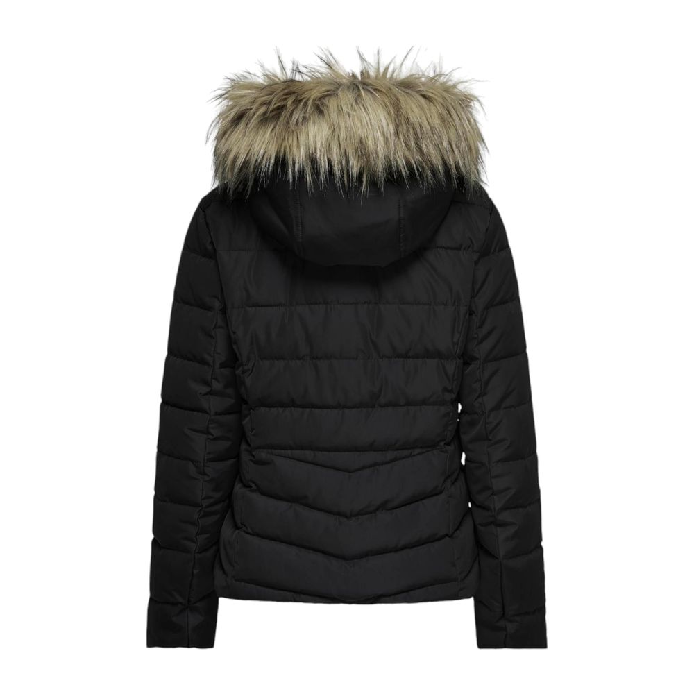 The Only ONLELLAN QUILTED HOOD CC OTW 15300254 women’s puffer jacket combines style and comfort, making it perfect for colder days. Crafted entirely from polyester, this jacket features warm padding and horizontal quilting for even heat distribution. The hood is adorned with a stylish faux fur trim, which can be removed to suit your look. A front zip closure and two practical side pockets with gold zippers add a modern and functional touch. With its regular fit and slightly cropped cut, this jacket is ideal for both casual outfits and more sophisticated combinations.