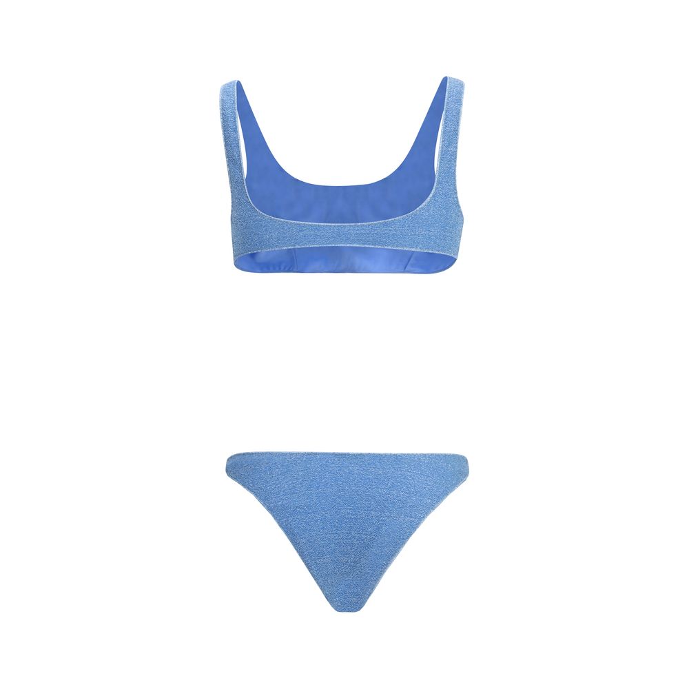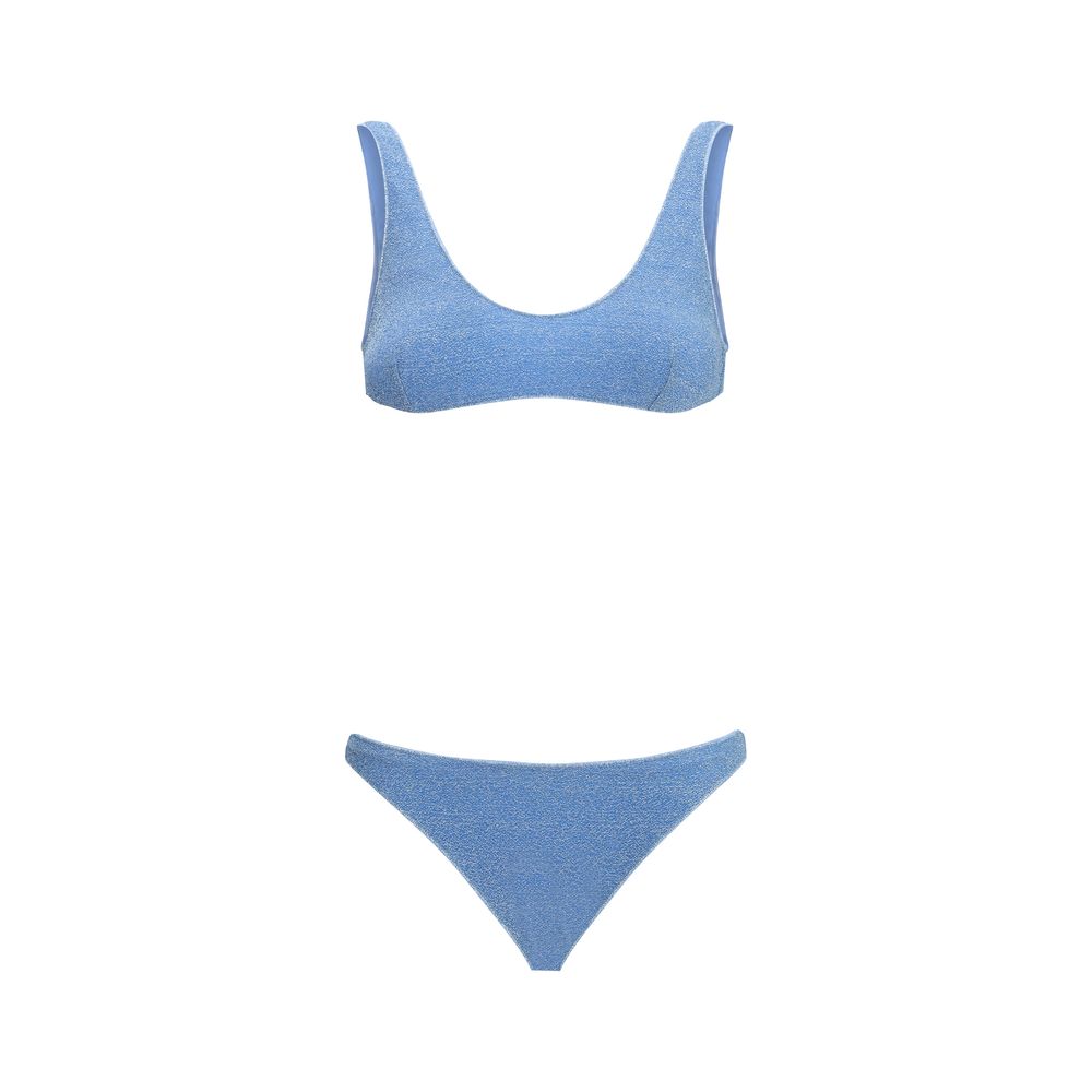 The Lumiere Sporty Swimsuit by Oséree is a perfect choice for those seeking a balance between sporty style and a touch of glamour. The bandeau top offers secure support thanks to the removable shoulder straps, combining functionality and comfort. The sporty design is emphasized by the simple and chic structure, while the all-over glitter pattern adds a subtle and sophisticated shine, catching the light in an elegant way. This swimsuit is ideal for those who want a dynamic and modern look, without sacrificing a touch of luxury, perfect for the pool or the beach, but also for those looking for a holiday outfit that does not go unnoticed.