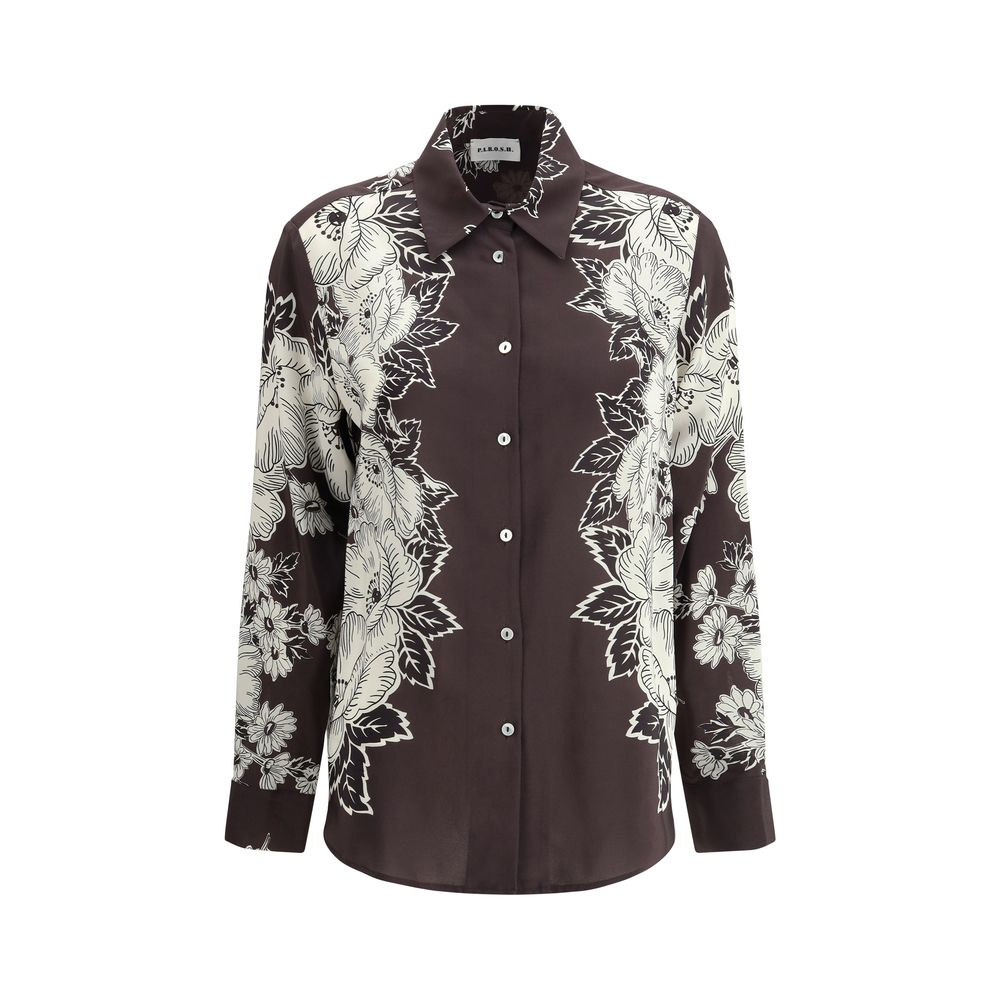 The P.A.R.O.S.H. floral print Shirt is a fresh and romantic piece, ideal for adding a touch of vivacity to your wardrobe. The classic collar and front button closure give it an elegant and versatile look, while the floral print makes it perfect for a spring or summer look. The buttoned cuffs complete the design, giving it a refined finish. Perfect to pair with high-waisted trousers or skirts, this shirt can be easily worn on both casual and more formal occasions, adding a touch of colour and freshness to your outfit.
