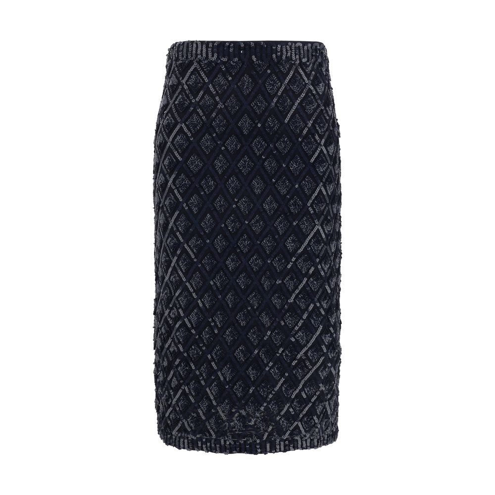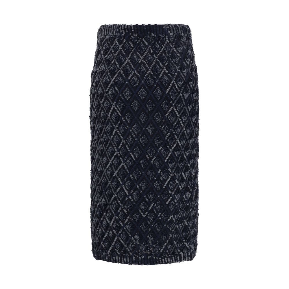 The Sequined midi Skirt by P.A.R.O.S.H. is a garment with a sparkling and sophisticated character, perfect for those looking for a glamorous look. The elasticated waistband ensures a comfortable and versatile fit, while the sequin diamond design adds a touch of originality and brightness to the model. The midi length lends understated elegance, making this skirt ideal for special events, elegant evenings or even for a bolder everyday look.