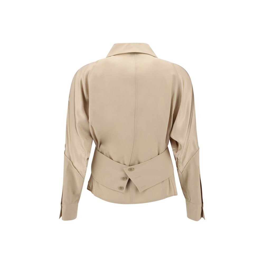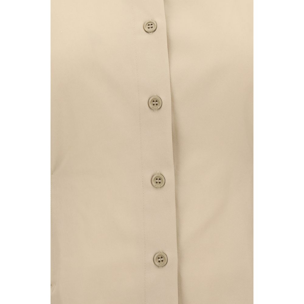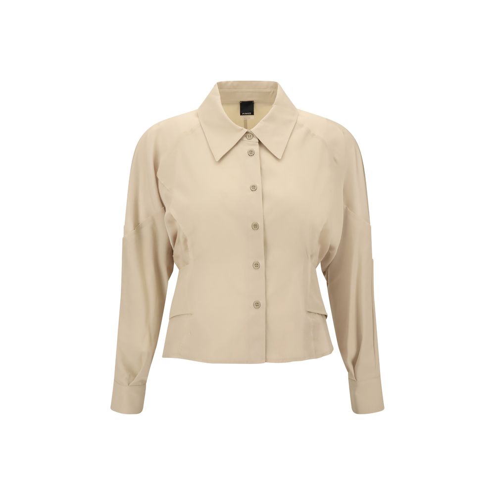 Pinko’s habotai Shirt, made of an extremely soft and lightweight fabric, combines elegance and casual sophistication. The pointed collar and long, voluminous sleeves are balanced by the wide cuff and the belt-effect band at the back, which gently gathers volume at the waist. The front button closure and slightly frayed profiles give the garment a delicately worn and sophisticated touch.