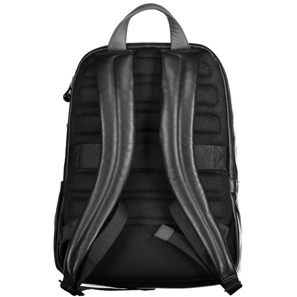 backpack 1 handle, adjustable shoulder straps, 2 external pockets, 2 separate compartments, 1 internal pocket for lap-top, internal spaces for documents, 1 removable side pocket for bottle holder, contrasting details, zip closure, logo