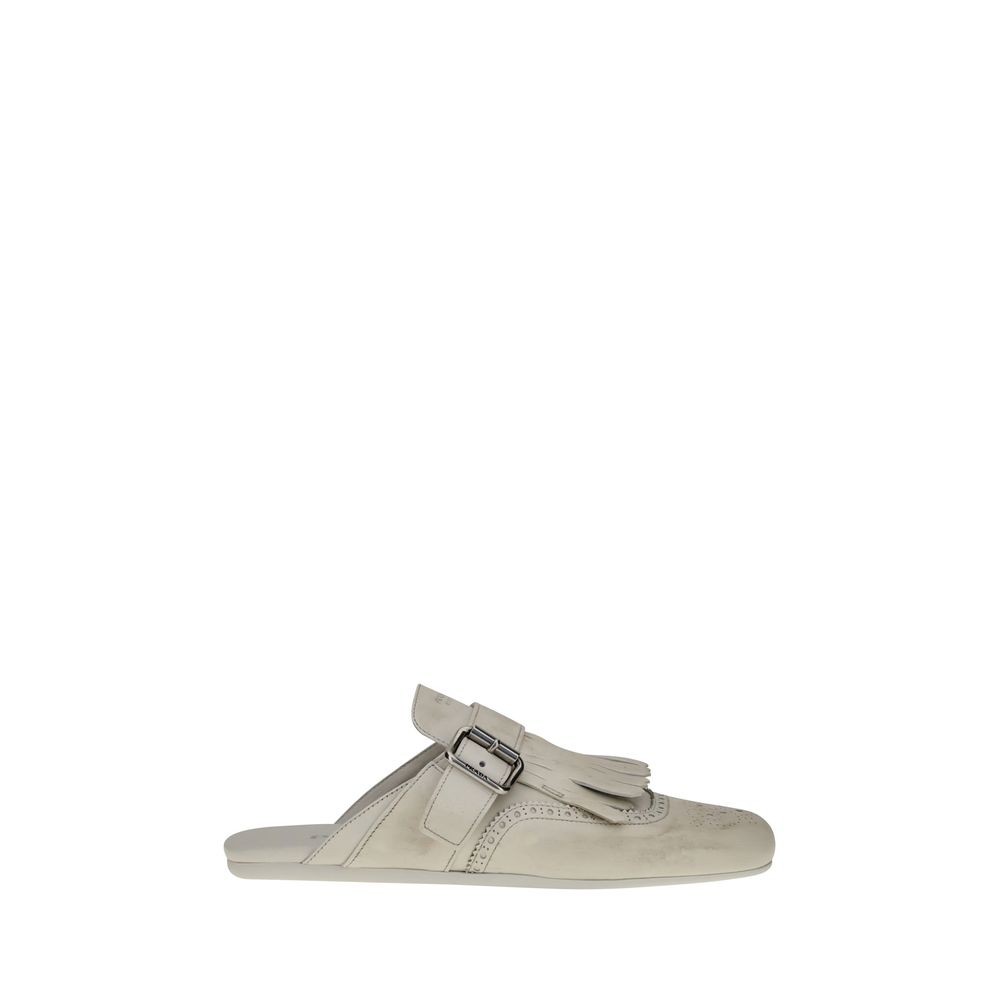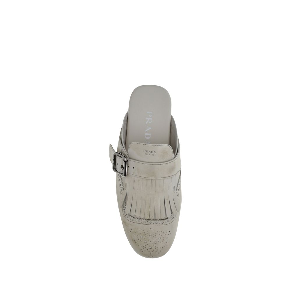 Prada’s Leather Mules is an elegant and versatile slip-on design that provides practicality and comfort. The buckle closure adds sophisticated detail, while the multi-layered sole offers durability and a contemporary touch. Complemented by a distinctive fringed detail, this sabot perfectly embodies Prada’s signature minimalist and chic aesthetic, perfect for those seeking sophisticated style without sacrificing functionality.
