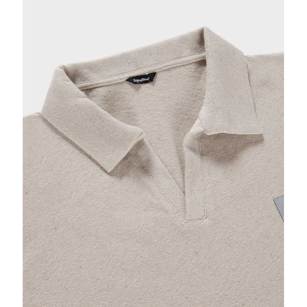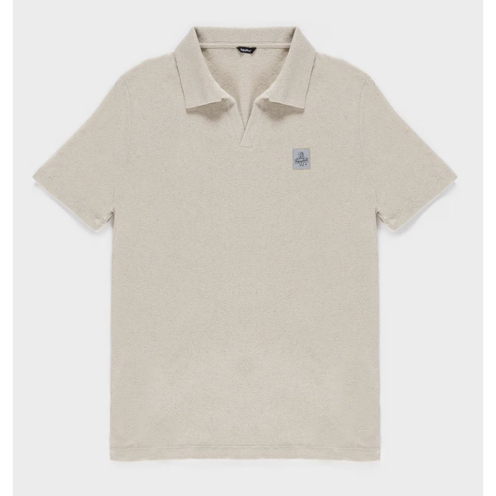 Refrigiwear, cotton-linen blend polo T-shirt, regular fit and iconic silver logo patch applied on chest.