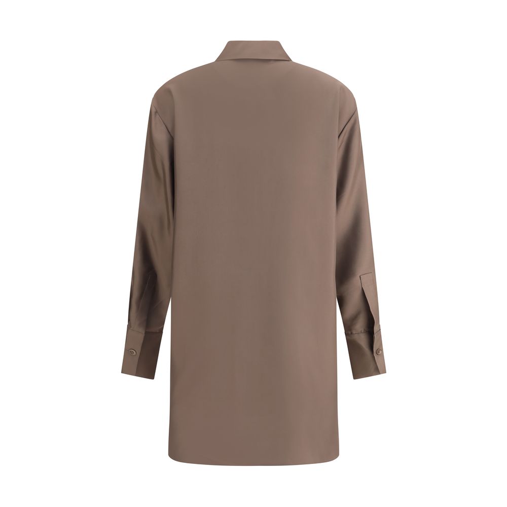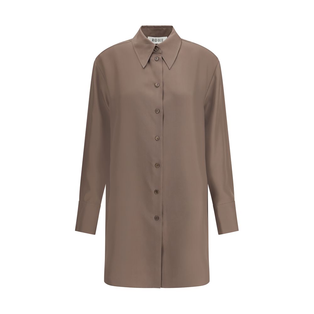 Rohe’s Silk Shirt is an elegant and sophisticated piece, perfect for special occasions or refined looks. The pointed collar adds a touch of class, while the front button closure keeps the design simple and clean. The knee-length pattern gives a fluid, lightweight cut that elegantly fits the figure. Made of silk, this shirt offers a soft texture and a polished appearance, ideal for those seeking a sophisticated, contemporary style.