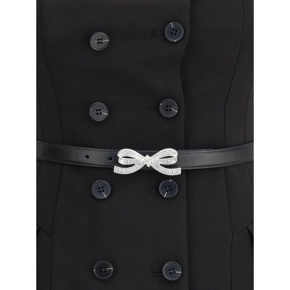 The crepe short sleeve Dress by Self-Portrait is the perfect choice for a special occasion, thanks to its balance of elegance and femininity. The rhinestone bow belt gives an instant glamorous touch, while the square neckline, flared hem, and sparkling buttons enhance the sophistication of the design. The gathered skirt at the sides adds movement and enhances the silhouette with discretion. A mini dress designed to shine, without excess.