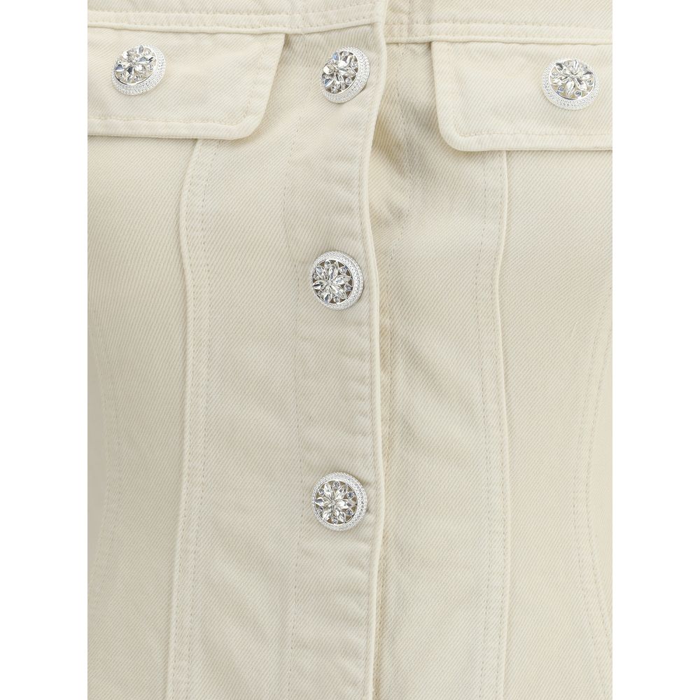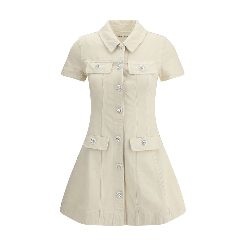 Self-Portrait’s Denim short Dress combines the casual appeal of denim with sophisticated details. Featuring a classic collar and a front closure with jeweled buttons, it has two front patch pockets with flaps and short sleeves. A versatile and modern garment perfect for everyday looks with a chic touch.