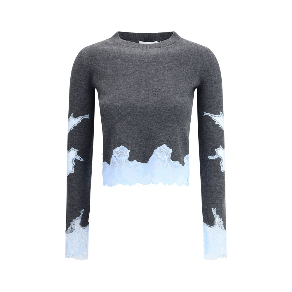 Self-Portrait’s Wool Sweater combines comfort and femininity in an original design. Featuring a ribbed crew neck and cropped cut, it has delicate arm inserts and a refined lace hemline that add a romantic and sophisticated touch to the garment.