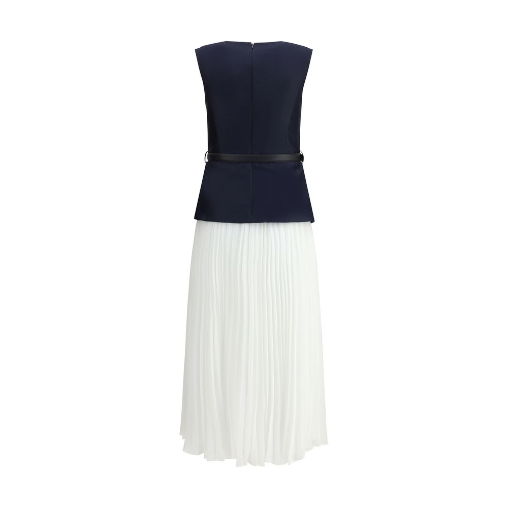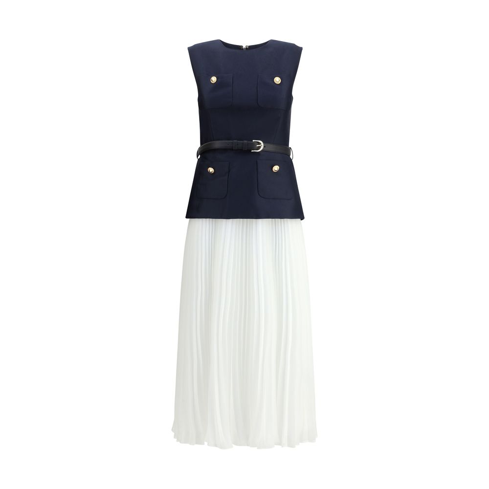 Self-Portrait’s Pleated Midi Dress combines functionality and femininity in a structured, modern design. Made without sleeves, it features a back zipper closure, an adjustable waistband that flatters the silhouette, and four patch pockets on the chest with embossed buttons. The pleated skirt lends movement and lightness to the look.